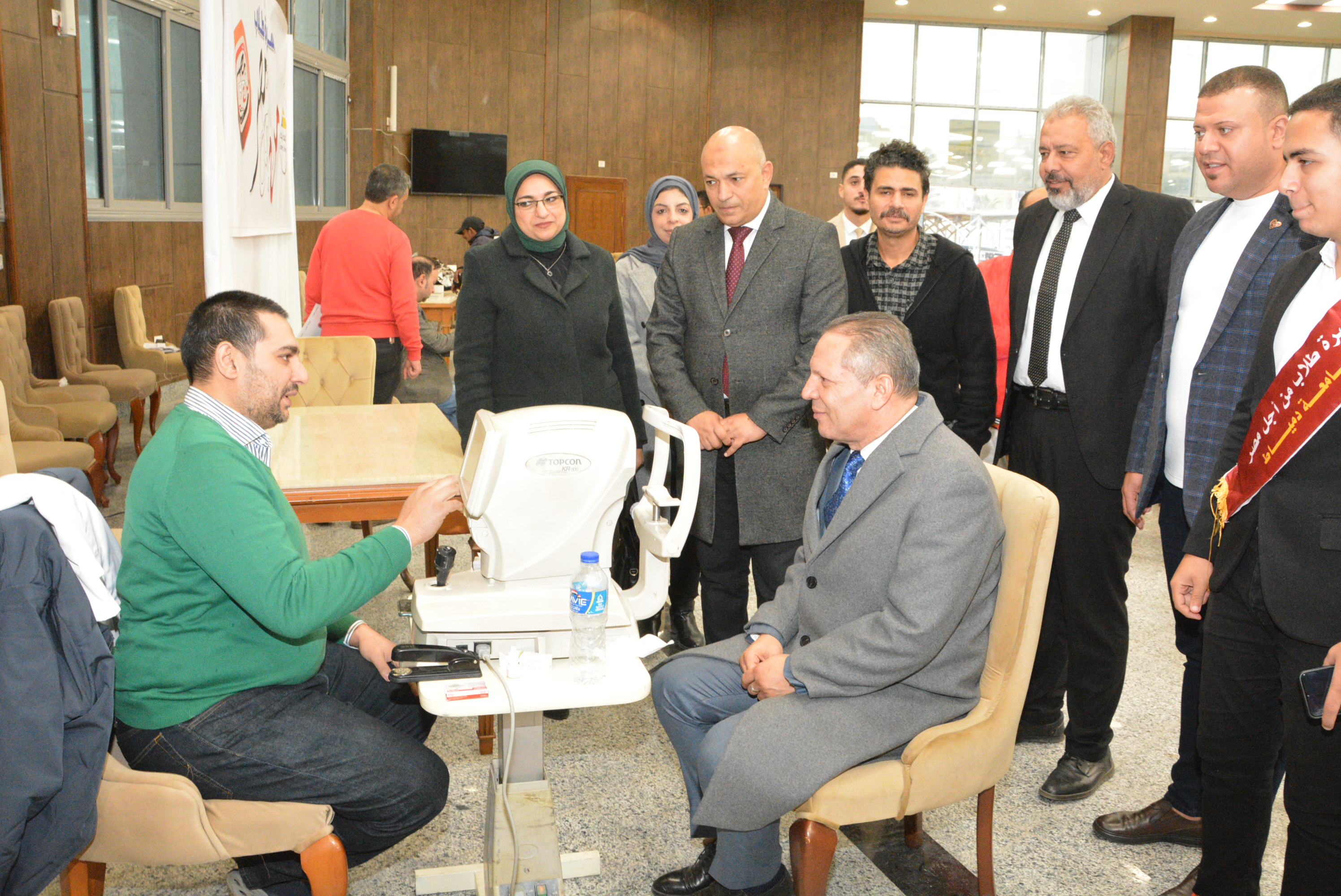 رئيس جامعة دمياط يتفقد القافلة الطبية للكشف على العيون لمنسوبي الجامعة