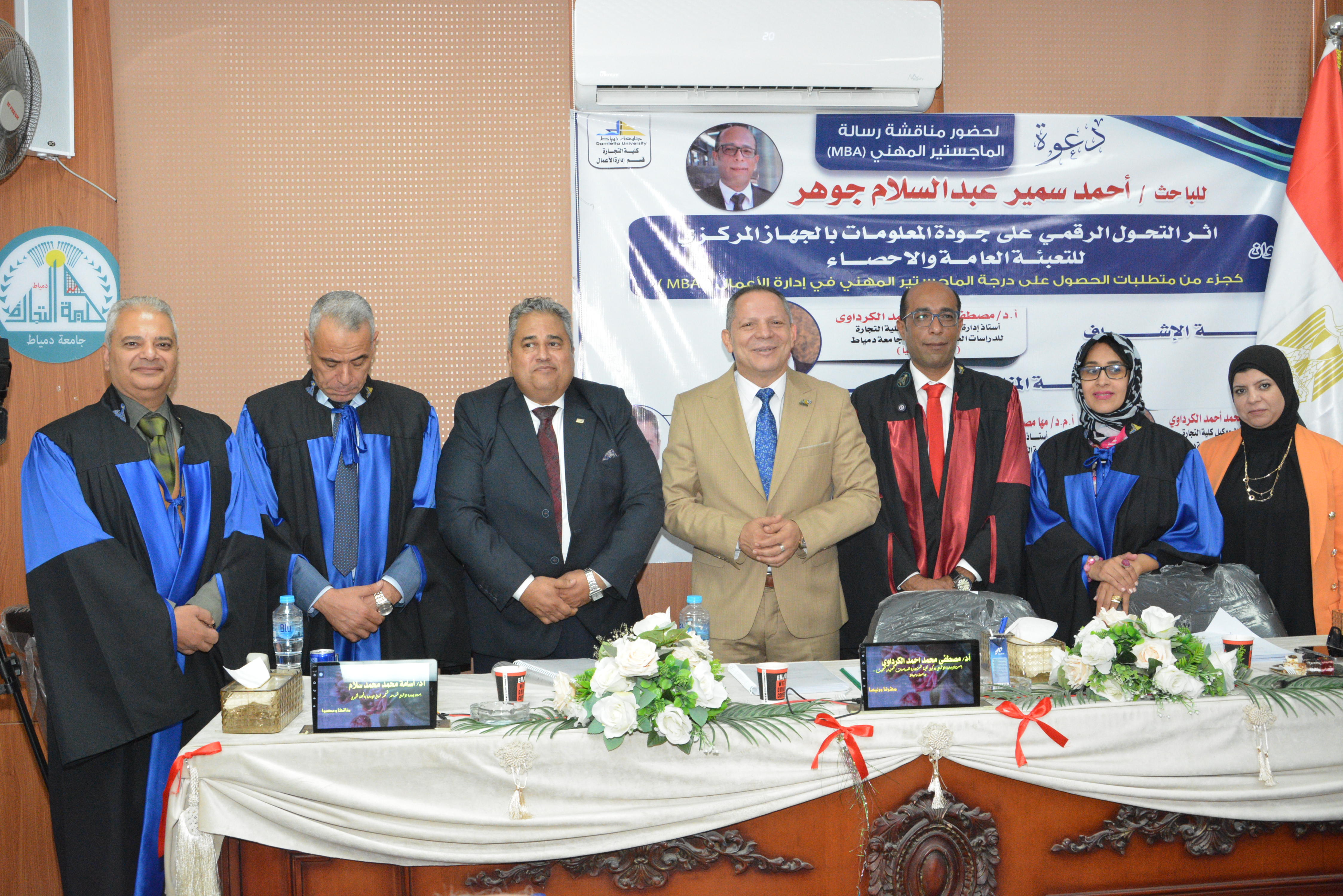 رئيس الجامعة يشهد مناقشة رسالة ماجستير مهني MBA بكلية التجارة جامعة دمياط | البوابة الالكترونية