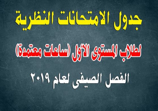 يعلن قطاع شئون التعليم والطلاب عن جدول الامتحانات النظرية للفصل الصيفى لطلاب المستوى الأول (نظام الساعات المعتمدة) للعام الجامعى 2018 /2019 مع أطيب التمنيات للطلاب بالتوفيق والنجاح