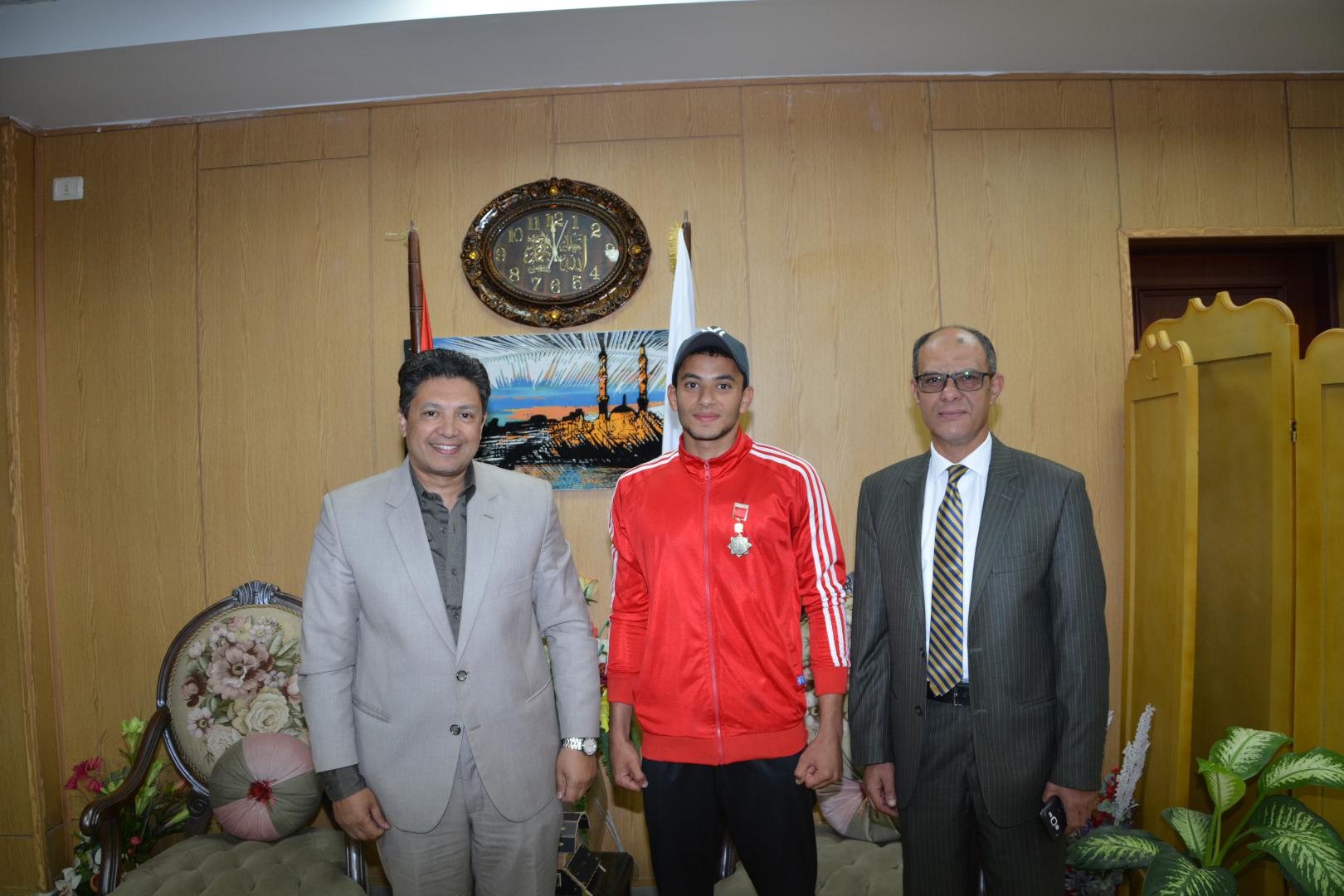 رئيس الجامعة يستقبل طالب بالمرحله الأعداديه