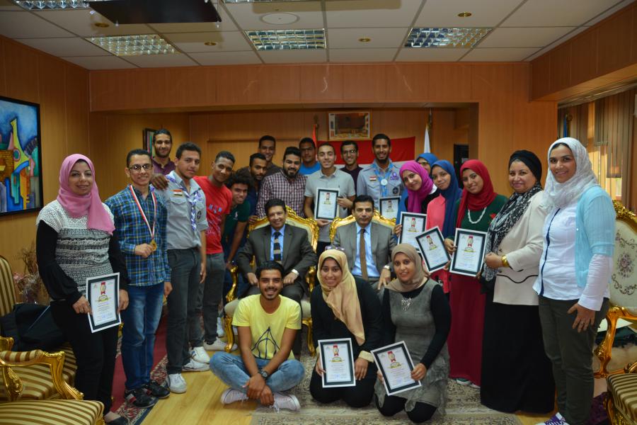 استقبل السيد أ.د/ السيد محمد دعدور- رئيس جامعة دمياط بحضور السيد أ.د/ طارق ابو المعاطي  -  نائب رئيس الجامعة لشئون التعليم والطلاب ، فريق الجوالة ، والنشاط الأجتماعي والفني والنشاط العلمي لجامعة دمياط والحاصلين علي المراكز الأولي في منافسات أسبوع شباب الجامعات الحادي عشر بجامعة