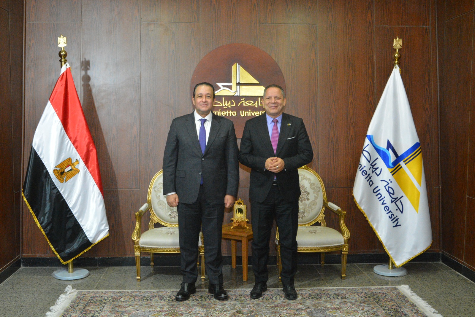 رئيس جامعة دمياط يشهد مناقشة رسالة ماجستير بكلية الحقوق