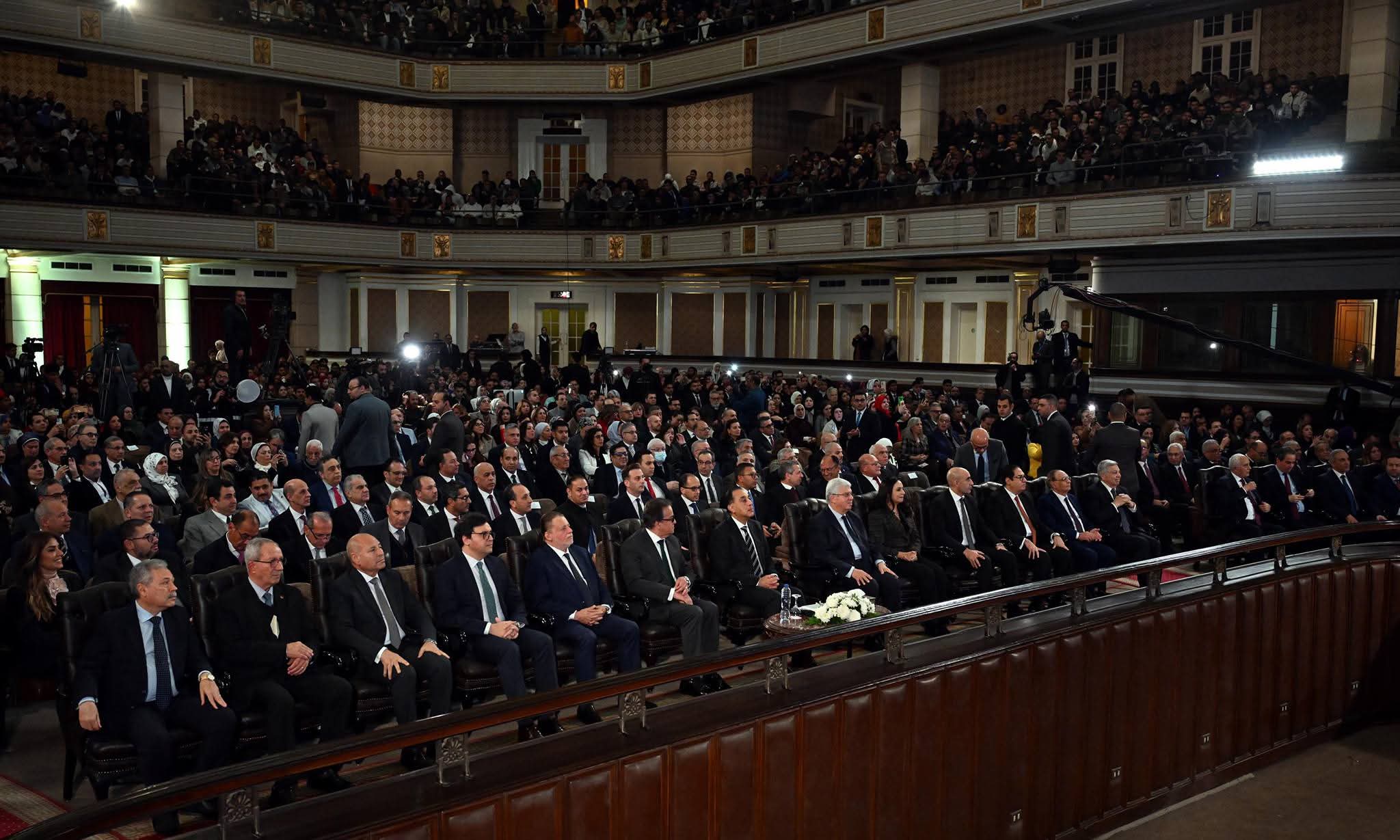 وشهدت الاحتفالية حضور الدكتور خالد عبد الغفار، نائب رئيس مجلس الوزراء للتنمية البشرية وزير الصحة والسكان، والسيد حسن عبد الله، محافظ البنك المركزي المصري، والدكتور محمد أيمن عاشور، وزير التعليم العالي والبحث العلمي، إلى جانب عدد من السادة الوزراء ووزراء التعليم العالي السابقين، والدكتور محمد سامي عبد الصادق، رئيس جامعة القاهرة، فضلًا عن عدد من كبار المسؤولين، ورؤساء الهيئات الإعلامية والصحفية، وصُنّاع القرار، ورؤساء الجامعات المصرية، والقيادات البنكية، ورجال وسيدات الأعمال والمجتمع الأهلي، وعدد كبير من الطلاب.