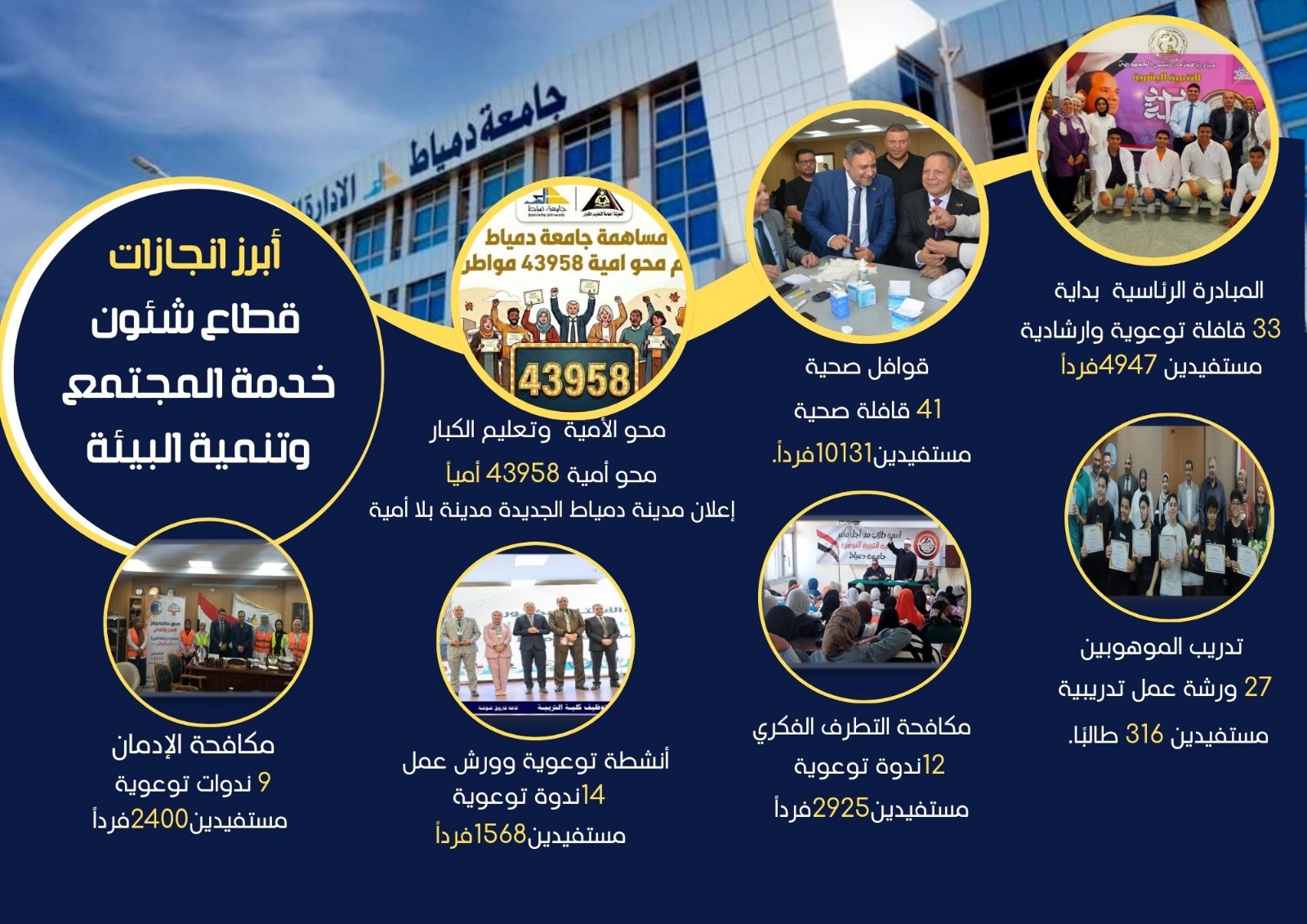 إنجازات قطاع شئون خدمة المجتمع وتنمية البيئة بجامعة دمياط لعام 2024-2025 إنجازات قطاع شئون خدمة المجتمع وتنمية البيئة بجامعة دمياط لعام 2023-2024