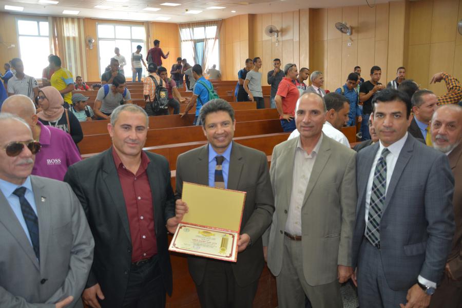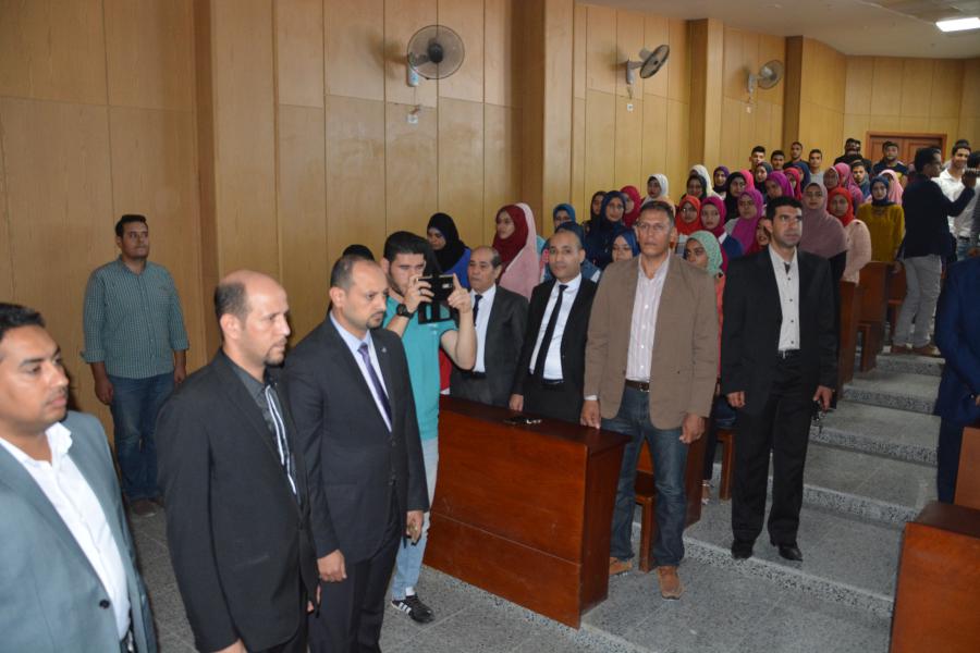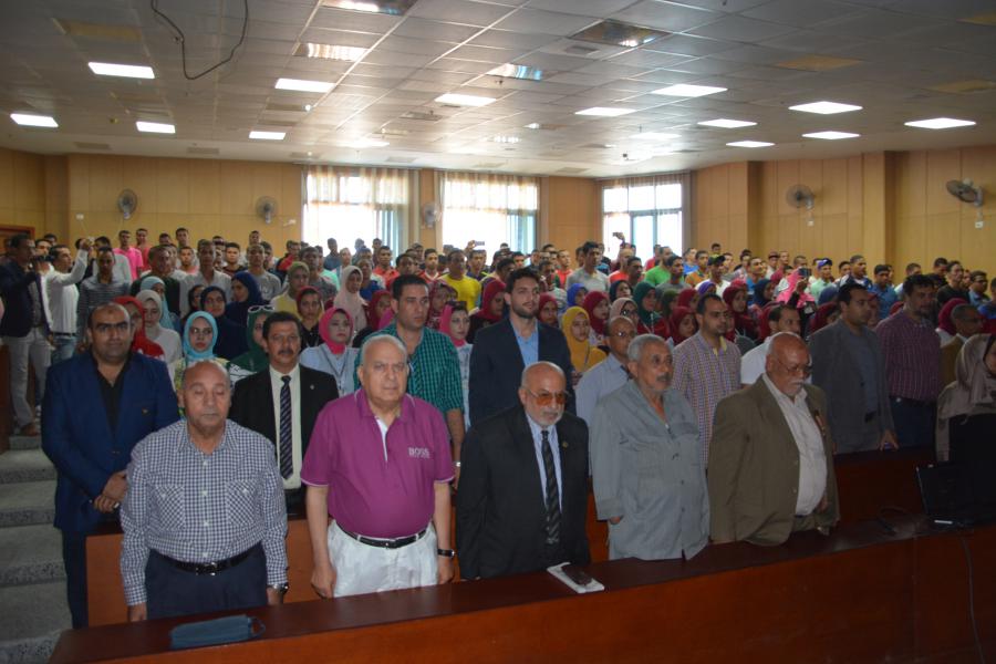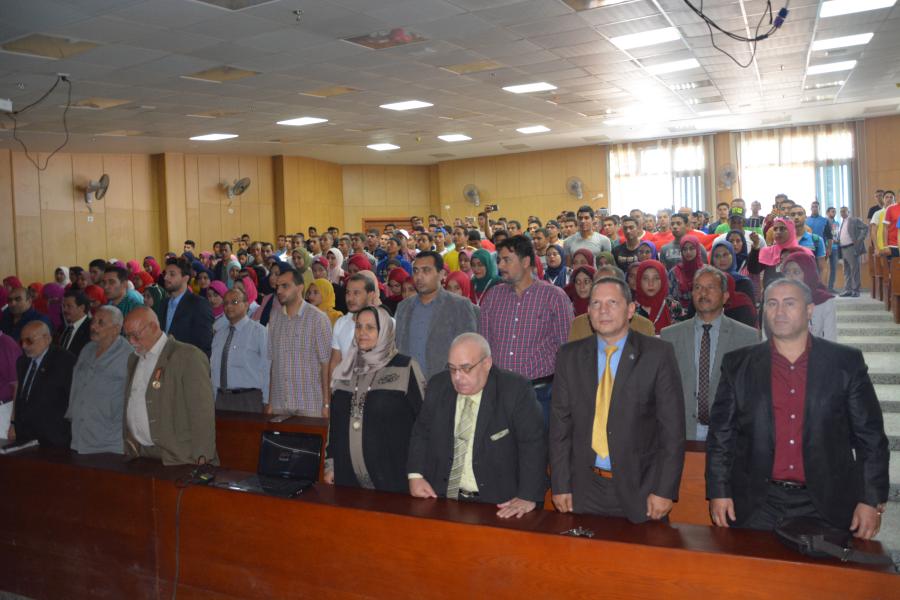 أُقيم اليوم الأربعاء الموافق 25/10/2017 فعاليات احتفالية الذكري الرابعة والاربعون لانتصارات أكتوبر المجيد وذلك بمدرج (104) بحرم الجامعة الجديد، برعاية كريمة من السيد الاستاذ الدكتور / السيد محمد دعدور – رئيس الجامعة وبحضور السيد الأستاذ الدكتور/ ممدوح محمد نعمة الله- نائب رئيس الجامعة لشئون الدراسات العليا والبحوث وتحت أشراف كلاً من السيد الأستاذ الدكتور/ طارق محمد أبو المعاطي- نائب رئيس الجامعة لشون التعليم والطلاب والسيد الاستاذ الدكتور / محمد علي أبو شوارب – عميد كلية التربية الراضية.