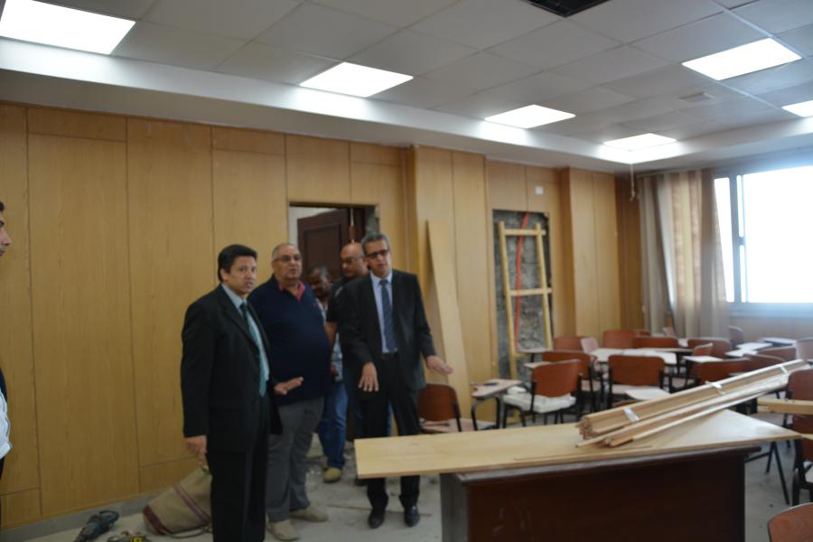تفقد اليوم الأربعاء الموافق 1/11/2017 السيد الأستاذ الدكتور/ السيد محمد دعدور- رئيس الجامعة تجهيزات المقر الجديد لمجلس الجامعة بالحرم الجامعي ،ووجه سيادته أمين عام الجامعة بضرورة الانتهاء من كافة التجهيزات اللازمة لنقل جزء من الإدارة العامة نقلاً مؤقتاً ولحين إنشاء المبنى الإداري للجامعة وذلك لمتابعة حسن سير العملية التعليمية .