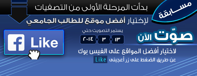 فاليوم 7-3-2014 بدأ التصويت لاختيار أفضل المواقع بصفحة المسابقة على الفيسبوك