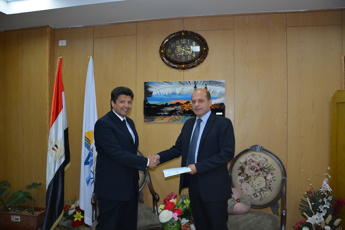 وقـّع اليوم الثلاثاء الموافق 10/4/2018 السيد أ.د/ السيد محمد دعدور - رئيس الجامعة قرار تعيين السيد أ.د/ المتولي مصطفي المتولي – أستاذ الأراضي بكلية الزراعة – وكيلاً لشئون خدمة المجتمع وتنمية البيئة بكلية الزراعة ولمدة ثلاث سنوات ،كما تقدم السيد الاستاذ الدكتور/ رئيس الجامعة بخالص التهنئة للسيد أ.د/ وكيل كلية الزراعة لشئون خدمة المجتمع علي تولية المنصب متمنياً له دوام التوفيق والسداد.
