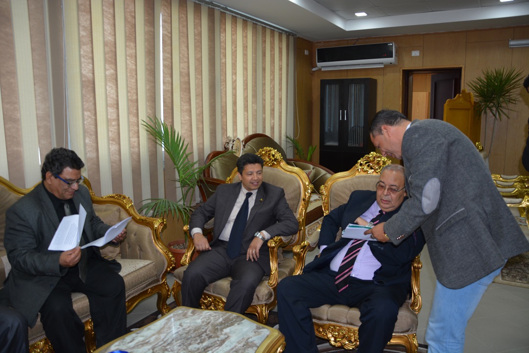 استقبل اليوم الاثنين الموافق 16/4/2018 السيد أ.د/ السيد محمد دعدور – رئيس الجامعة لجنة قطاع الآداب والتي تضم كلا من السيد أ.د/ عماد محمد مخيمر – عميد كلية الآداب جامعة الزقازيق ،والسيد أ.د/ محمد عثمان عبد الجليل – عميد كلية الآداب جامعة بورسعيد ، والسيد أ.د/ محسن عبد الغني جبر أستاذ بكلية الآداب جامعة المنصورة كما رافق اللجنة السيد أ.د/ حمدان ربيع - وكيل كلية الآداب لشئون التعليم والطلاب ، وذلك للوقوف على مدى توافر المقاومات المادية والبشرية اللازمة لإنشاء كلية الآثار والسياحة كما قام السيد الأستاذ الدكتور / السيد محمد دعدور – رئيس الجامعة باصطحاب اللجنة لتفقد مقر الكلية والمعامل المخصصة لكلية الآثار والسياحة حيث قدرت اللجنة حجم الاعمال داخل الحرم الجامعي وأشادوا بالمقر المقترح للكلية والماكن المخصصة من مدرجات ومعامل.