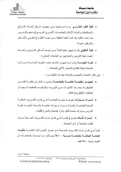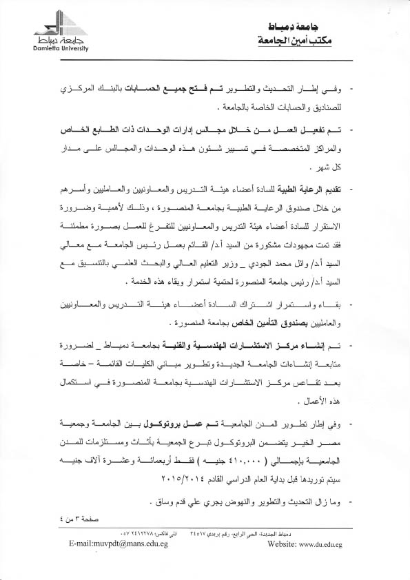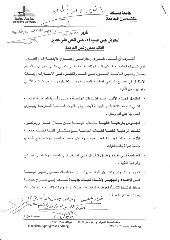 تقرير بانجازات السيد أ.د/ علي فتحي حمايل جامعة دمياط | البوابة الالكترونية