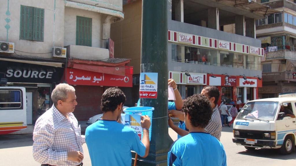 قام السيد ا.د/ علي فتحي حمايل – رئيس الجامعة يوم الخميس الموافق 26/6/2014 بمشاركة أبناءة الطلاب في اليوم البيئي الذي نظمتة الجامعة بمدينة دمياط القديمة تحت عنوان " دمياط نظيفة" ، هذا وكان في استقبال سيادتة إدارة العلاقات العامة بالمحافظة والسيد اللواء / إبراهين القطان – رئيس مركز ومدينة دمياط الذي ابدي اعجابة بالفكرة وطالب بتكرار التجربة مره أخري ، وجدير بالذكر أن الطلاب قد قاموا بنظافة بعض الشوارع وارشاد المواطنين بان يحافظوا علي نظافة مدينتهم وكان بينهم السيد ا.د/ رئيس الجامعة حيث تلقي بعض المقترحات من السادة المواطنين خاصة نقل سوق السمك الي أطراف المدينة وفتح الطرق وأكد سيادتة بان السيد المحافظ له الدور التنفيذي وسوف ينقل لسيادته وجهه نظرهم في اطار التعاون المستمر والبناء بين الجامعة والمحافظة كما قام الطلاب بوضع عدد من سلات القمامة ملصق عليها شعار " اهداء من جامعة دمياط