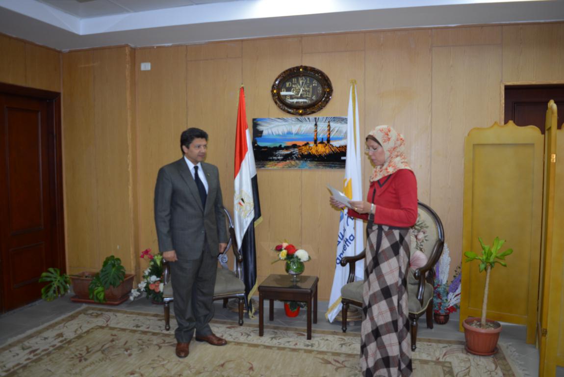 ولقد استقبلهما سيادته لأداء القسم الوظيفي ثم حثهما على بذل الجهد فى موقع مسئوليتهما ، متمنيا لهما التوفيق والسداد .