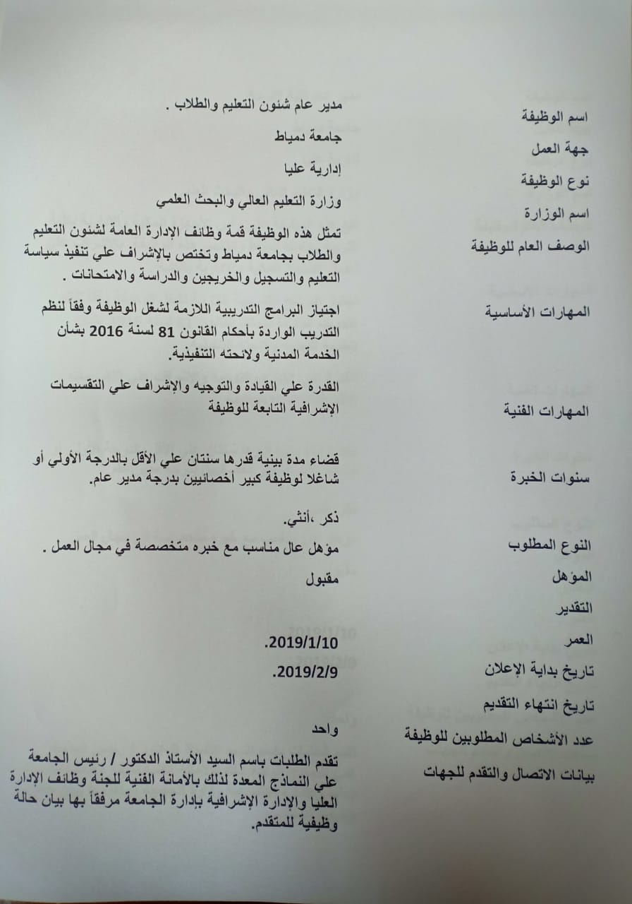 اعلان لشغل وظائف قيادية بالجامعة (مدير عام كلية التربية - مدير عام شئون تعليم وطلاب) لشروط الاعلان الدخول علي بوابة الوظائف الحكومية او اضغط هنا