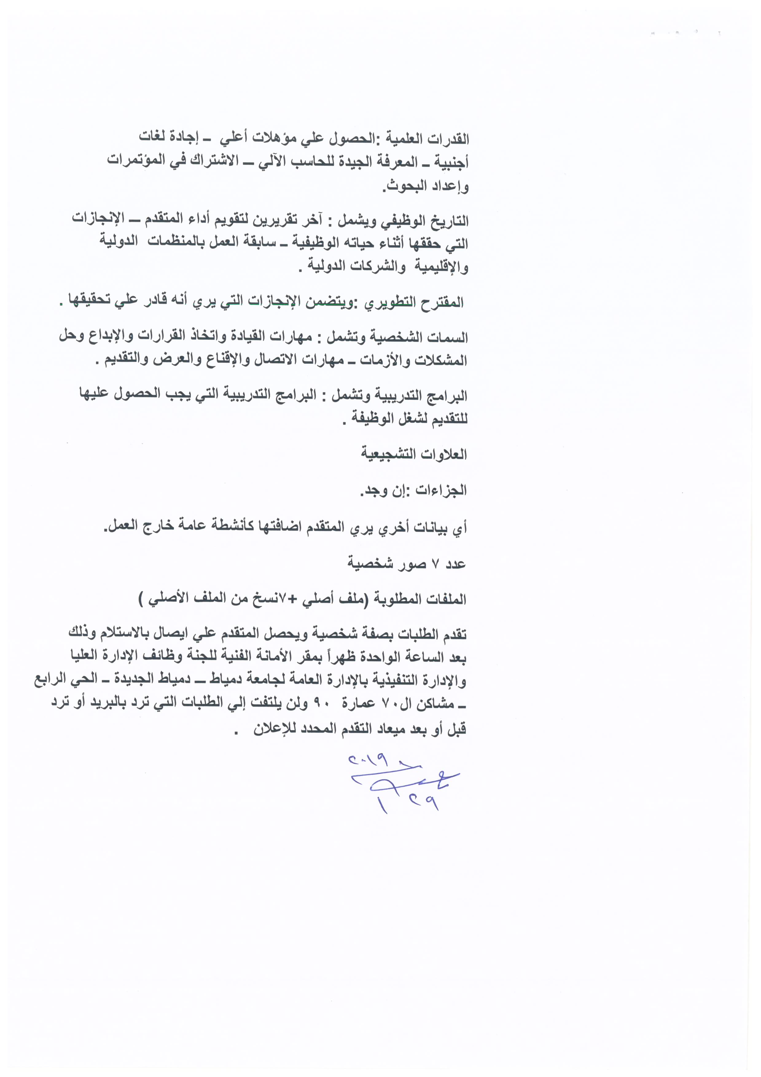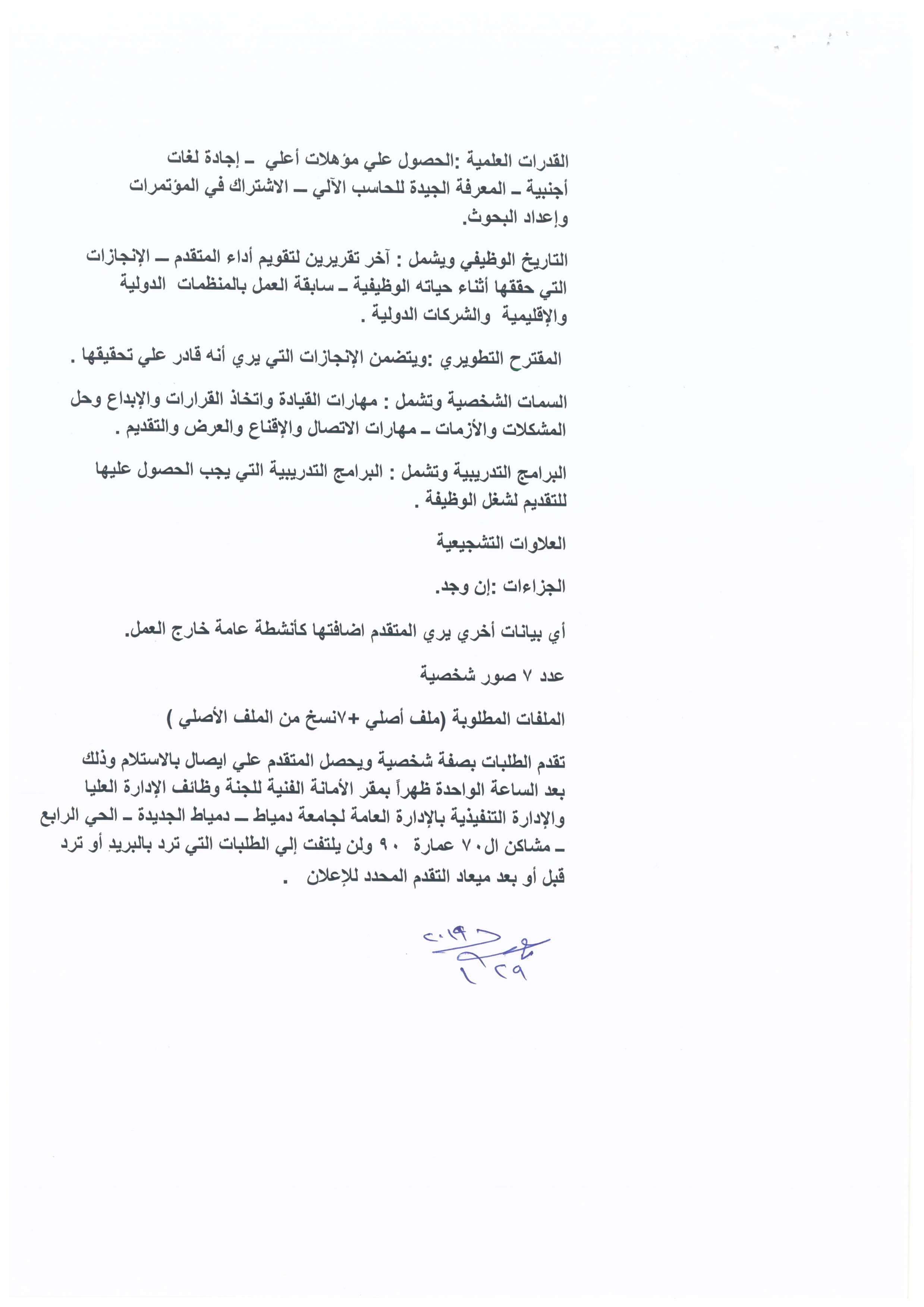تعلن جامعة دمياط عن حاجتها لشغل وظائف شاغرة بالجامعة (مدير عام الشئون الإداريه ، مدير عام الشئون الهندسية ) للدخول علي الإعلان أضغط هنا.