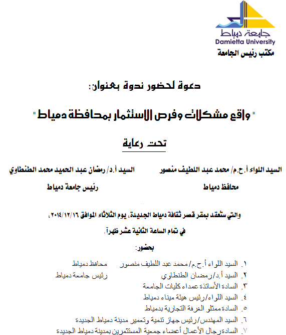 دعوة لحضور ندوة بمقر قصر ثقافة دمياط الجديدةجامعة دمياط | البوابة الالكترونية