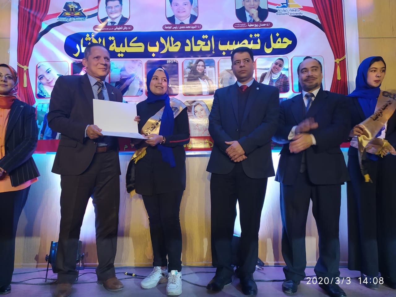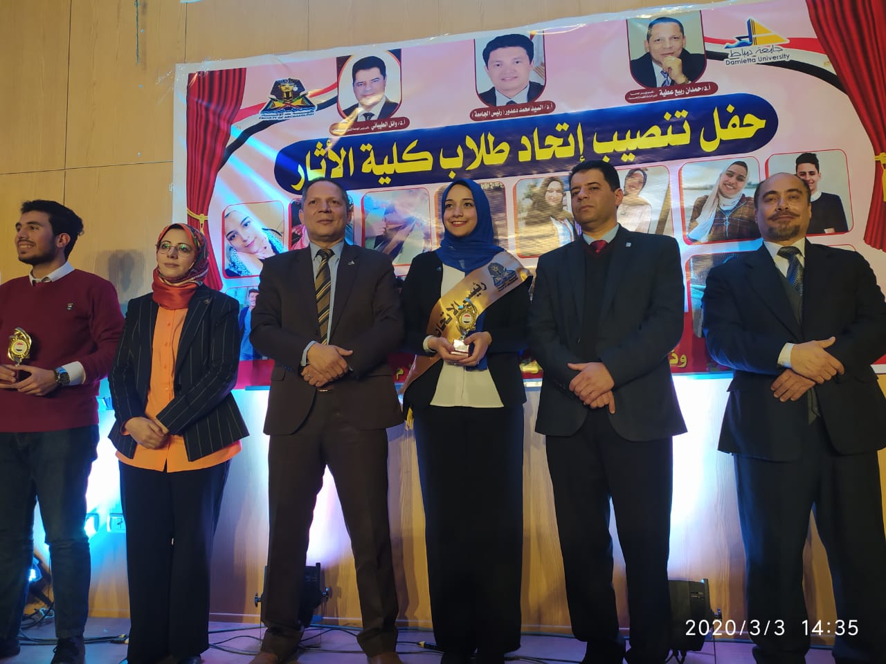 تحت رعاية معالي السيد الأستاذ الكتور / السيد محمد دعدور - رئيس الجامعة أقيم اليوم الثلاثاء 3-3-2020 حفل تنصيب اتحاد طلاب كلية الآثار 2019-2020 وذلك بحضور السيد الأستاذ الدكتور / وائل فاروق الطيباني - نائب رئيس الجامعة لشئون التعليم والطلاب والسيد الأستاذ الدكتور / حمدان ربيع المتولي - نائب رئيس الجامعة للدراسات العليا والبحوث وعميد كلية الآثار وعدد من أعضاء هيئة التدريس والهيئة المعاونة بالكلية وبحضور طلابي كبير .