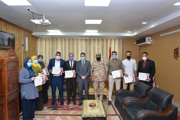 بناء علي تفويض معالي الاستاذ الدكتور/السيد محمد دعدور رئيس الجامعة، كرم اليوم السيد الاستاذ الدكتور/ وائل فاروق الطيباني - نائب رئيس الجامعة لشئون التعليم والطلاب برفقة العقيد/ محمد سامي عبدالغني- مدير ادارة التربية العسكرية بالجامعة لعدد من أعضاء هيئة التدريس والهيئة المعاونة وعدد من الجهاز الاداري بالجامعة لمشاركتهم الفعاله والمثمرة مع ادارة التربية العسكرية .