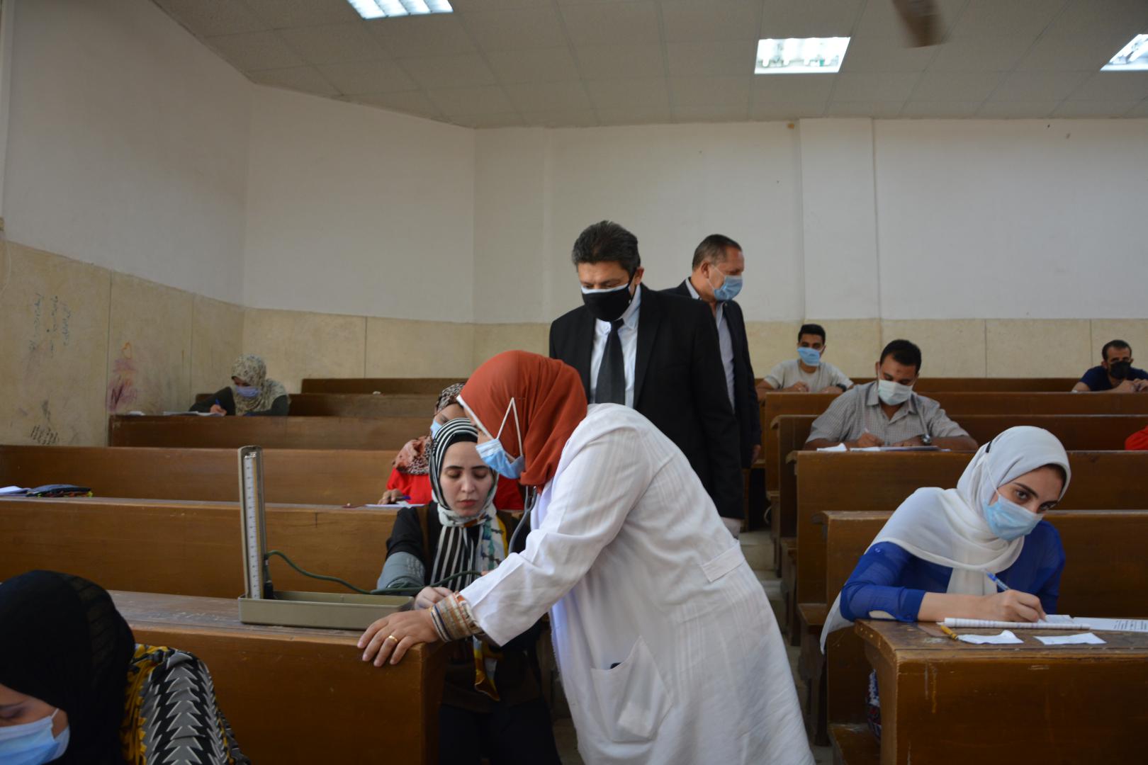 وقد تم اتخاذ كافة الاجراءات والتدابير الاحترازية الخاصة بتعقيم الطلاب والطالبات وكذلك أوراق الأسئلة والإجابة.