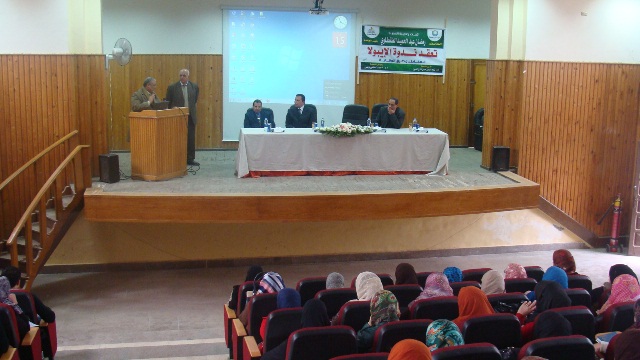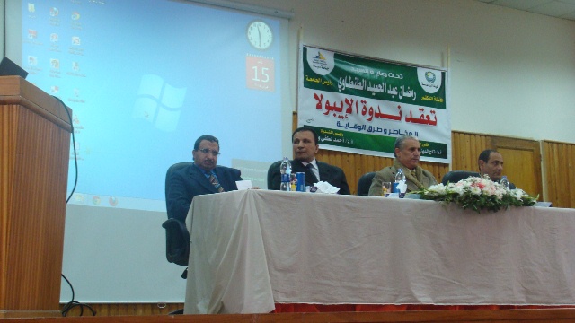انعقدت اليوم الأحد 15/2/2015 ندوة بكلية الزراعة بعنوان "الإيبولا – المخاطر وطرق الوقاية" تحت رعاية السيد أ.د/ رمضان الطنطاوي – رئيس الجامعة، وينظمها قطاع شئون خدمة المجتمع وتنمية البيئة بكلية الزراعة، حيث تعد الندوة أول أنشطة الموسم الثقافي والعلمي لكلية الزراعة في الفصل الدراسي الثاني.