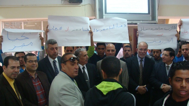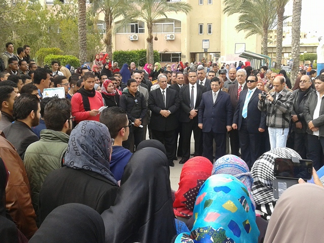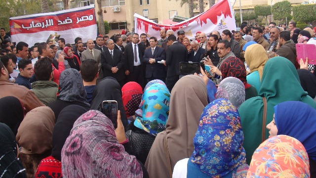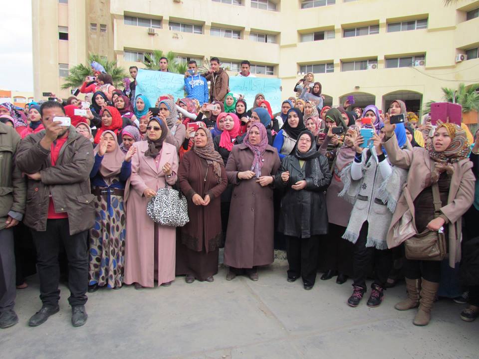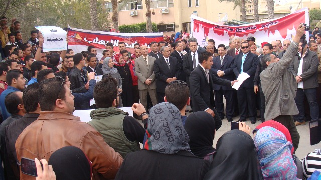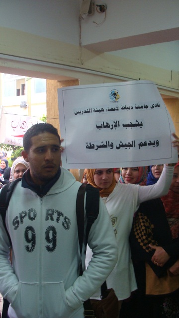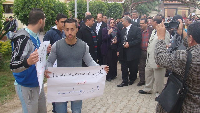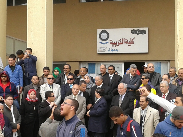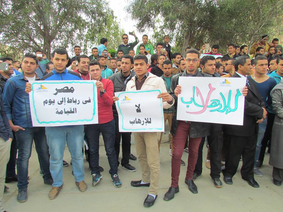 نظم اليوم الأربعاء 18/2/2015 طلاب الجامعة وقفة تضامنية بكلية التربية بدمياط الجديدة وكلية الآداب بدمياط وذلك تنديداً بالحادث الإرهابي الغاشم الذى ألم بأبناء الوطن الشرفاء بدولة ليبيا، وتأييداً للضربة الجوية والإجراءات التي تتخذها القيادة السياسية ثأراً لأبناء الوطن حيث تضمنت الوقفة: