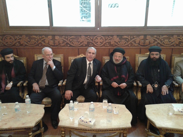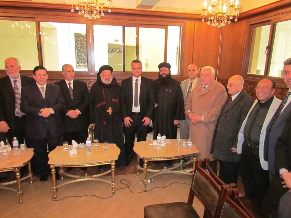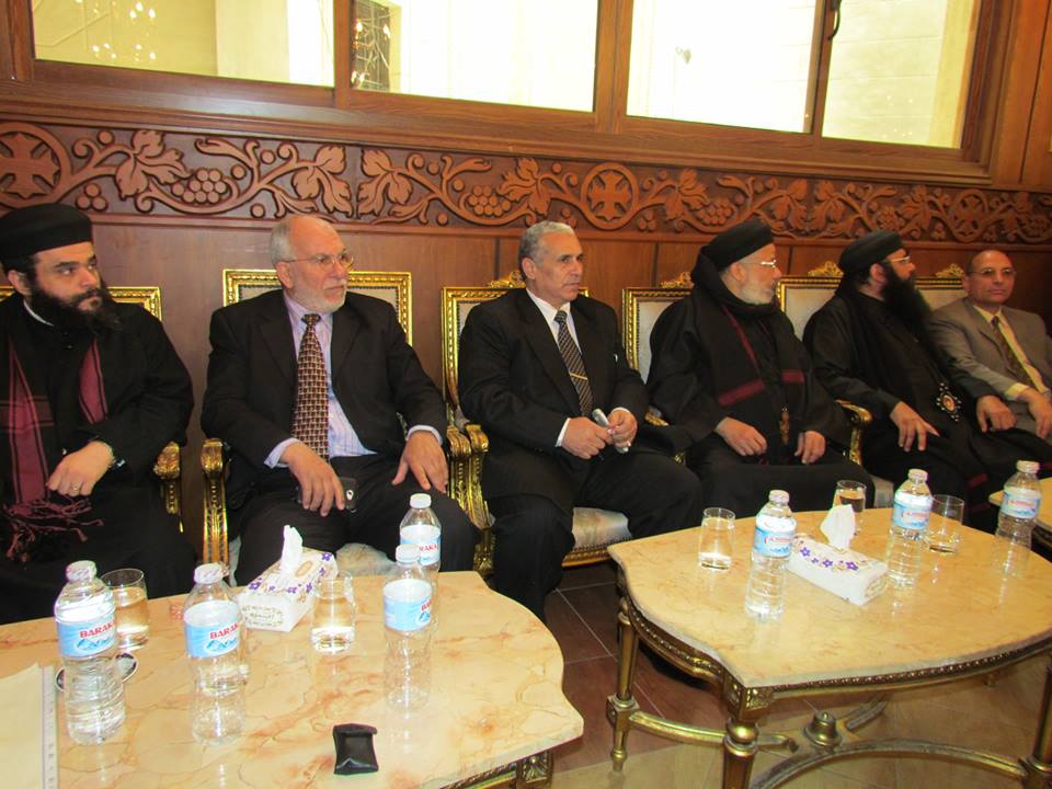 عقب تلك الوقفة، زيارة لكنيسة العذراء بدمياط لتقديم واجب العزاء في إخواننا المسيحيين الذي راحوا ضحية إرهاب "داعش الغاشم"، حيث استقبل سيادته الحبر الجليل/ صرابامون متري – وكيل مطرانية دمياط وأعضاء الكنيسة، وقدم السيد أ.د/ رئيس الجامعة واجب العزاء والسيد أ.د/ نائب رئيس الجامعة للدراسات العليا والبحوث وكذلك السادة عمداء الكليات، وخلال الزيارة، أكد رئيس الجامعة أن ما حدث قد آلم المصريين جميعاً، وأكد أيضاً أن وحدة الشعب المصري (مسلمين ومسيحيين) لن ين يستطيع أي إرهاب غاشم أن ينال منها.