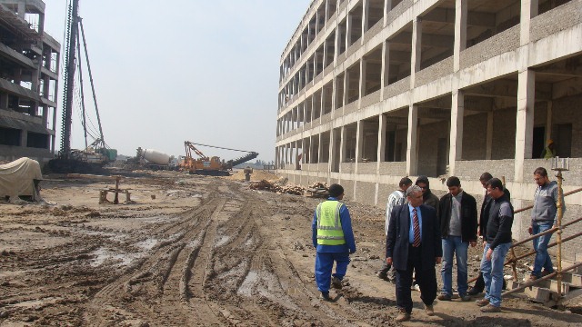 عقب ذلك اللقاء، توجه السيد رئيس الجامعة لموقع إنشاءات الجامعة بحرم الجامعة الجديد لمتابعة سير العمل في المراحل الأربعة المختلفة، حيث انتظم سير العمل هناك، كما أكد علي ممثلي شركة المقاولون العرب بضرورة الانتهاء من كافة الأعمال بالمرحلة الأولي، والتي من المقرر بدء أعمال التشطيب بها غداً 23/2/2015، حيث ستقوم الشركة الثلاثية للإعمار والمقاولات التي تم ترسية أعمال تشطيب المرحلة الأولي والتعمير بتلك الأعمال.