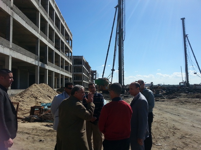 وخلال متابعة سيادتهم للإنشاءات، التقوا بالسادة مسئولي المراحل الإنشائية المختلفة، حيث أكد المهندس/ عبد الرحمن سالم – من شركة المقاولون العرب أن العمل يتم علي قدم وساق وذلك للانتهاء من كافة المراحل الثلاثة المسندة إليهم في الوقت المحدد، كما سيتم البدء في تشطيبات المرحلة الثانية فور الانتهاء من بعض الإجراءات الخاصة بتلك المرحلة.