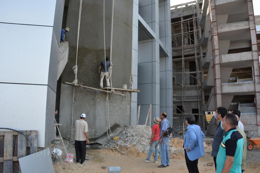 كما تفقد السيد رئيس الجامعة أعمال المرحلة الثالثة التي تشمل عدد 4 مدرجات مركزية بسعة معيارية 4 آلاف طالب وطالبة، حيث انتظمت الكلادينج والتشطيبات الخارجية للمبنى.