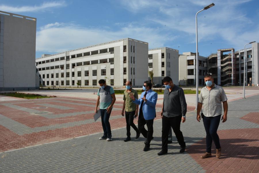 تفقد ظهر اليوم الأربعاء الموافق 28 أكتوبر 2020 السيد الأستاذ الدكتور السيد محمد دعدور رئيس الجامعة سير العمل بالإنشاءات الجاري العمل بها بحرم الجامعة الجديد؛ حيث انتظمت أعمال التنسيق الحضاري ضمن مرحلة البنية التحتية التي تقوم بتنفيذها شركة المقاولون العرب.