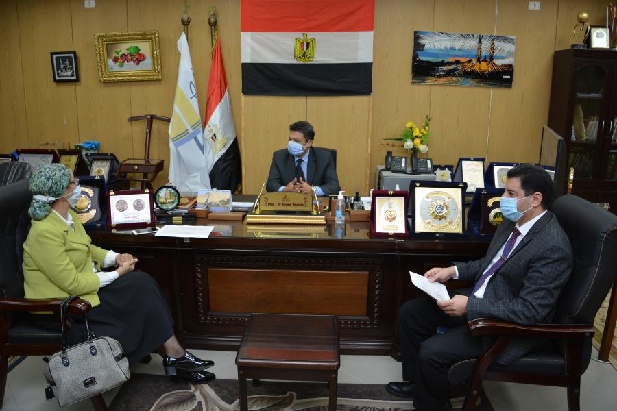 التقى اليوم الأربعاء الموافق 30 ديسمبر 2020 السيد الأستاذ الدكتور السيد محمد دعدور رئيس الجامعة السيدة د/ هبه صالح مدير معهد تكنولوجيا المعلومات بوزارة الاتصالات، وذلك لبحث إنشاء "مركز تدريب وإبداع مصر الرقمية CREATIVA" بالجامعة.