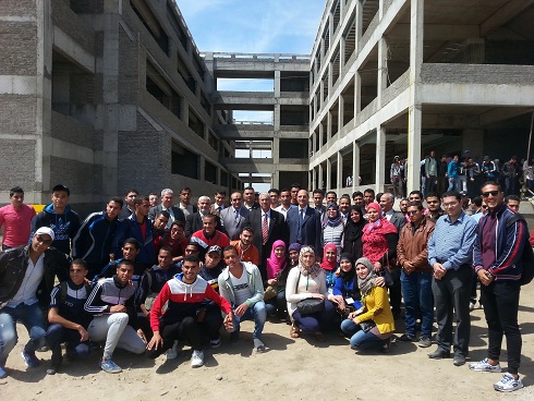 حيث توجه السيد أ.د/ رمضان الطنطاوي – رئيس الجامعة والسادة الحضور الأساتذة عمداء ووكلاء كليات الجامعة وأعضاء هيئة التدريس، وأمناء الجامعة والكليات وممثلي طلاب الجامعة بزيارة موقع الإنشاءات بحرم الجامعة الجديد.