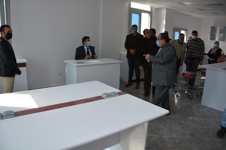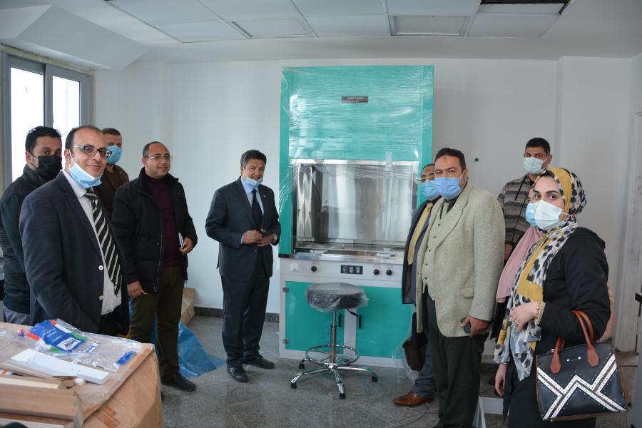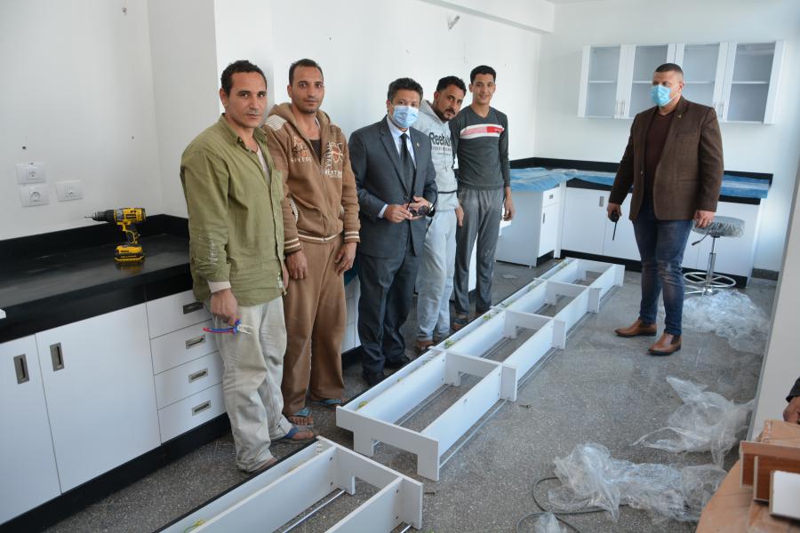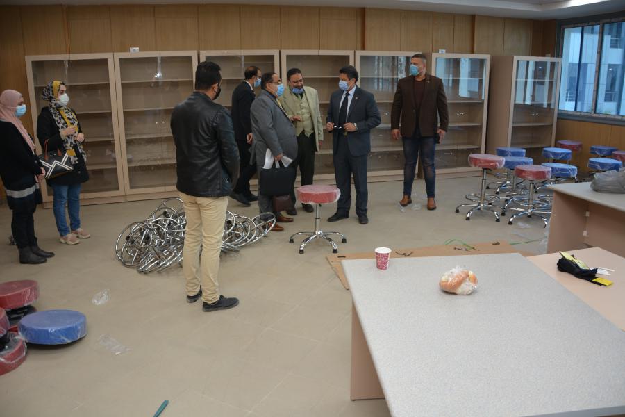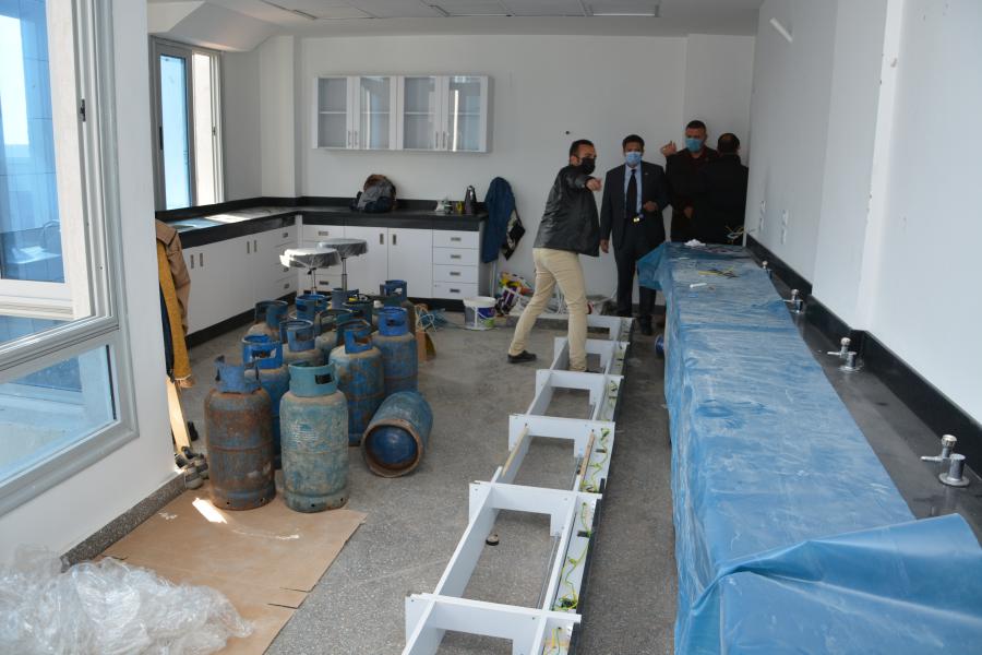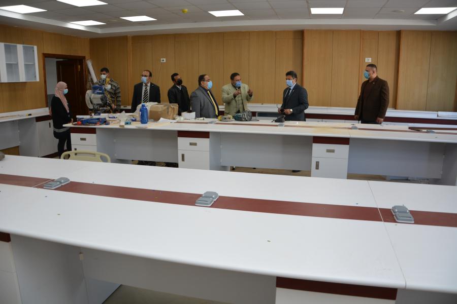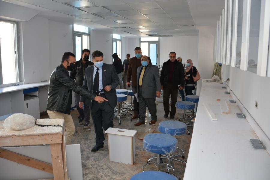 تفقد اليوم الأربعاء الموافق 3 فبراير 2021 السيد الأستاذ الدكتور السيد محمد دعدور رئيس الجامعة برفقة أ.د أشرف طلعت القائم بعمل عميد كلية الطب البشري وعدد من أعضاء هيئة التدريس الجهاز الإداري بكلية الطب البشري الأعمال النهائية الخاصة بمعامل كلية الطب البشري من أعمال فرش وتجهيز وتأثيث معامل: