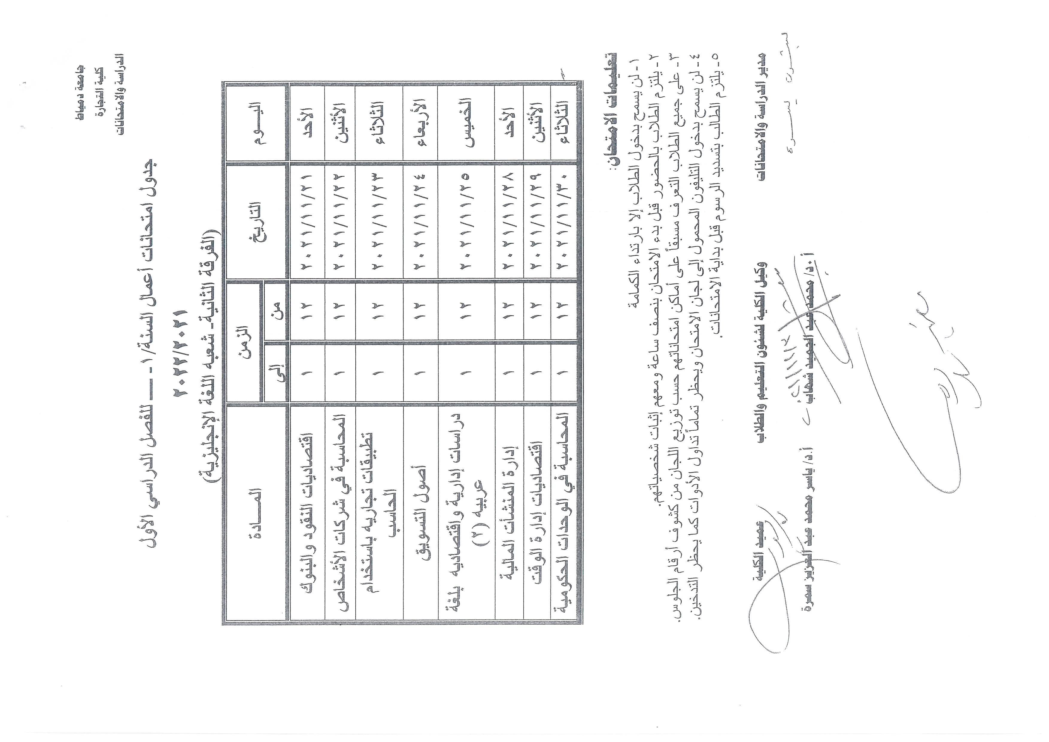 أعلنت إدارة كلية التجارة بجامعة دمياط عن جدول امتحانات اعمال السنة من الفصل الدراسى الاول شعبة اللغة الانجليزىة للعام الجامعى 2021-2022