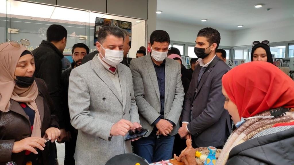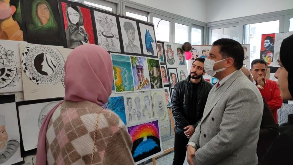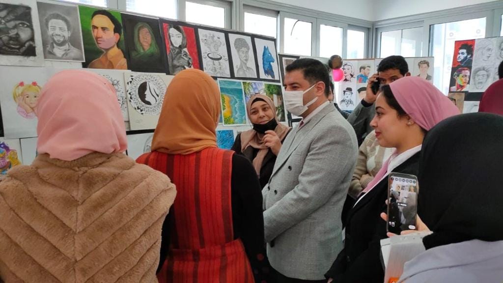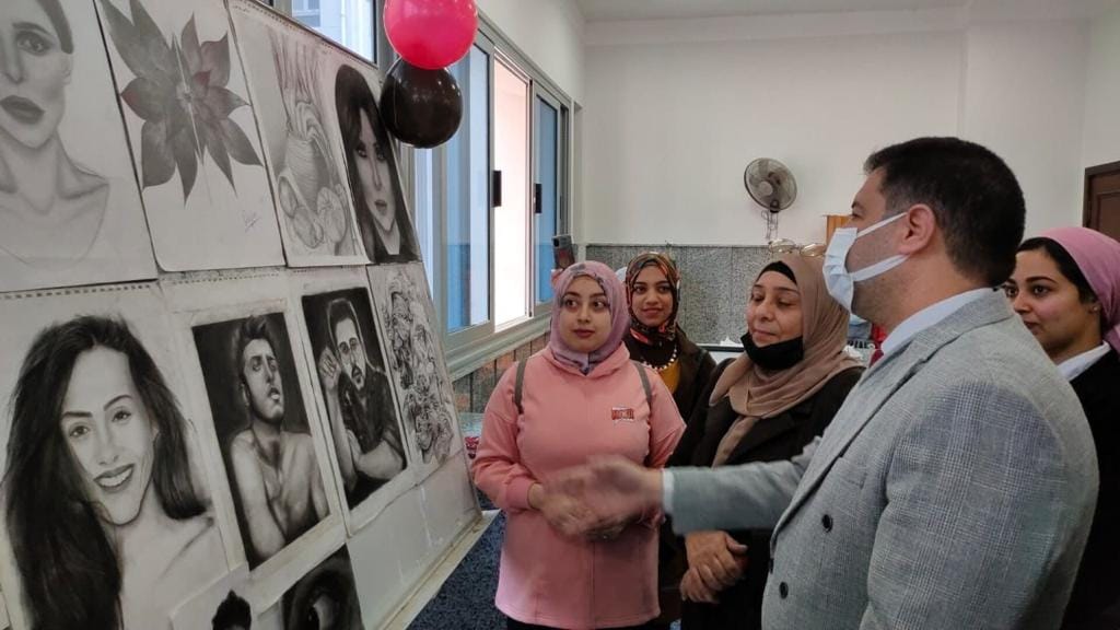 Enable Gingerبناء علي توجيهات فخامة رئيس الجمهورية السيد عبد الفتاح السيسي بإكتشاف الموهبين ورعايتهم و إعداد دورات تدريبية لتنمية مهاراتهم، وتعليمات السيد الاستاذ الدكتور السيد محمد دعدور- رئيس الجامعة قام السيد الاستاذ الدكتور وائل فاروق الطيباني- نائب رئيس الجامعة لشئون التعليم والطلاب بإفتتاح المعرض الفني بكليه الآداب،وقد رافق سيادته السيد الاستاذ الدكتور/عطية القللي- عميد الكلية يوم الثلاثاء الموافق 2022/3/1 وقد تفقد السيد ا.د نائب رئيس الجامعة لشئون التعليم والطلاب الاعمال الفنيه بالمعرض الفني،والذي يأتي في إطار خطة الجامعة لاكتشاف ورعاية الموهوبين في جميع المجالات ( الفنية- العلمية- الثقافية- الرياضية) حيث اعطي المعرض الفرصة للطلاب الموهوبين فنيا لعرض اعمالهم وتوضيح الأفكار المنبثقة من الأعمال المعروضة و قد تنوعت و تميزت بالثراء والتنوع في العديد من المجالات الفنية (الرسم بالفحم- الرسم بالرصاص- التصوير زيتي- التصوير فوتوغرافي -الهاند ميد).