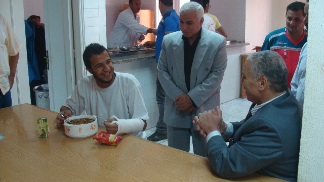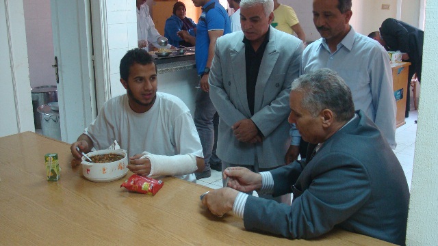 وخلال تفقده مطعم المدينة الجامعية، التقى بأحد الطلاب وتناول وجبة الغداء للوقوف على حالة الطعام المقدم.