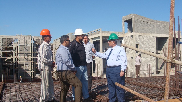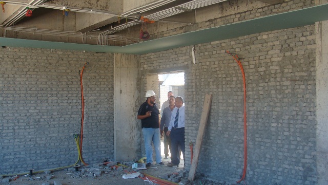 تفقد صباح اليوم الأحد في الثامنة والنصف 11/10/2015 السيد أ.د/ رمضان الطنطاوي - رئيس الجامعة إنشاءات الجامعة بحرم الجامعة الجديد، حيث انتظمت كافة الأعمال بتشطيبات المرحلة الأولى المسند أعمالها للشركة الثلاثية بمختلف الفصول والقاعات والمدرجات والمكاتب الإدارية، وتم تركيب الهيكل المعدني للمصاعد تمهيداً لتركيب المصاعد في الفترة المقبلة بالتوازي مع الانتهاء من أعمال التشطيبات.