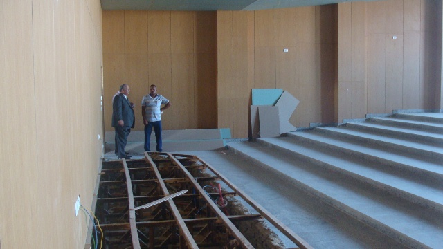 4. غرف الكهرباء بجوار الحمامات، مطلوب: تشطيبها ودهانها وتأمينها، وكذلك جميع المناور الخاصة بالدور الأخير بمبنى المدرجات.