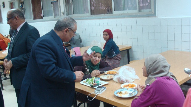 توجه بعد ذلك السيد رئيس الجامعة للمدينة الجامعية (بنات) وتناول وجبة الغذاء مع الطالبات للوقوف على مدى جودة الطعام المقدم، كما التقى عدد من الطالبات، ووجه سيادته السيد أمين عام الجامعة بضرورة تواجد مدير عام المدن الجامعية ومدير عام شئون خدمة المجتمع وتنمية البيئة بدءً من صباح الغد للعمل على حل بعض المشكلات التي أشارت إليها بعض الطالبات.