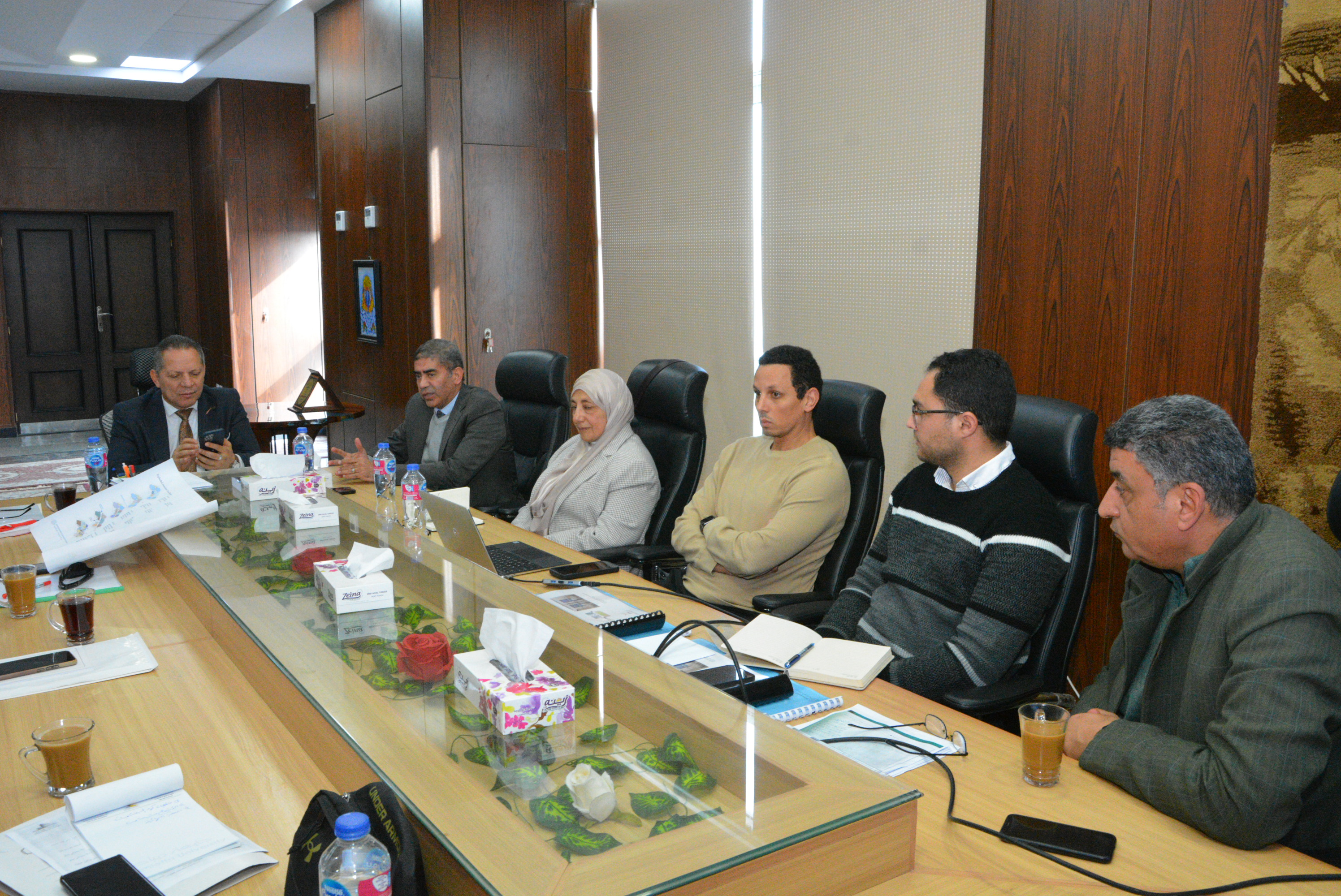 حضر اللقاء كل من الأستاذ الدكتور محمد شهاب، نائب رئيس الجامعة لشؤون الدراسات العليا والبحوث، والأستاذ الدكتور باسم الديك، عميد كلية الطب، والأستاذ الدكتور محمد غصوب، وكيل كلية الهندسة لشؤون التعليم والطلاب ورئيس لجنة الإشراف على المشروع، والأستاذ الدكتور أحمد الجمل، وكيل كلية الهندسة لشؤون خدمة المجتمع وتنمية البيئة وعضو لجنة الإشراف، والدكتور إبراهيم عبد المحسن، عضو لجنة الإشراف على المشروع.
