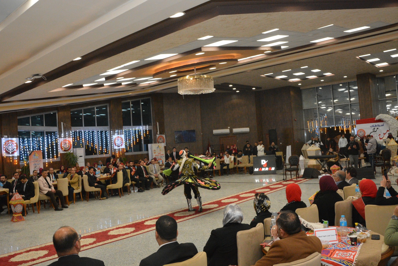 كما شهد الحفل فقرة غنائية قدمها الدكتور أحمد سعد بقسم التربية الموسيقية، أعقبها عدد من الفقرات الفنية المتنوعة شملت عرض التنورة، وفقرة الدبكة، والرقص الصعيدي، وسط تفاعل كبير من الحضور.