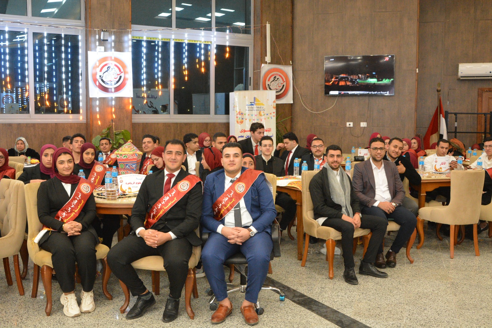 في أجواء رمضانية تسودها روح الألفة والتواصل بين قيادات الجامعة وطلابها، وحرصاً من جامعة دمياط على تعزيز الأنشطة الطلابية ودعم روح الانتماء والعمل الجماعي بين الطلاب، وتحت رعاية وحضور الأستاذ الدكتور حمدان ربيع المتولي رئيس الجامعة ، نظم قطاع شئون التعليم والطلاب بالجامعة بقيادة الأستاذ الدكتور محمد عبده عماشة نائب رئيس الجامعة لشئون التعليم والطلاب، اليوم الثلاثاء الموافق 10 مارس 2026، حفل الإفطار السنوي لأسرة "طلاب من أجل مصر"، بنادي أعضاء هيئة التدريس ، وذلك بحضور عدد من القيادات التنفيذية والأكاديمية بالمحافظة والجامعة.