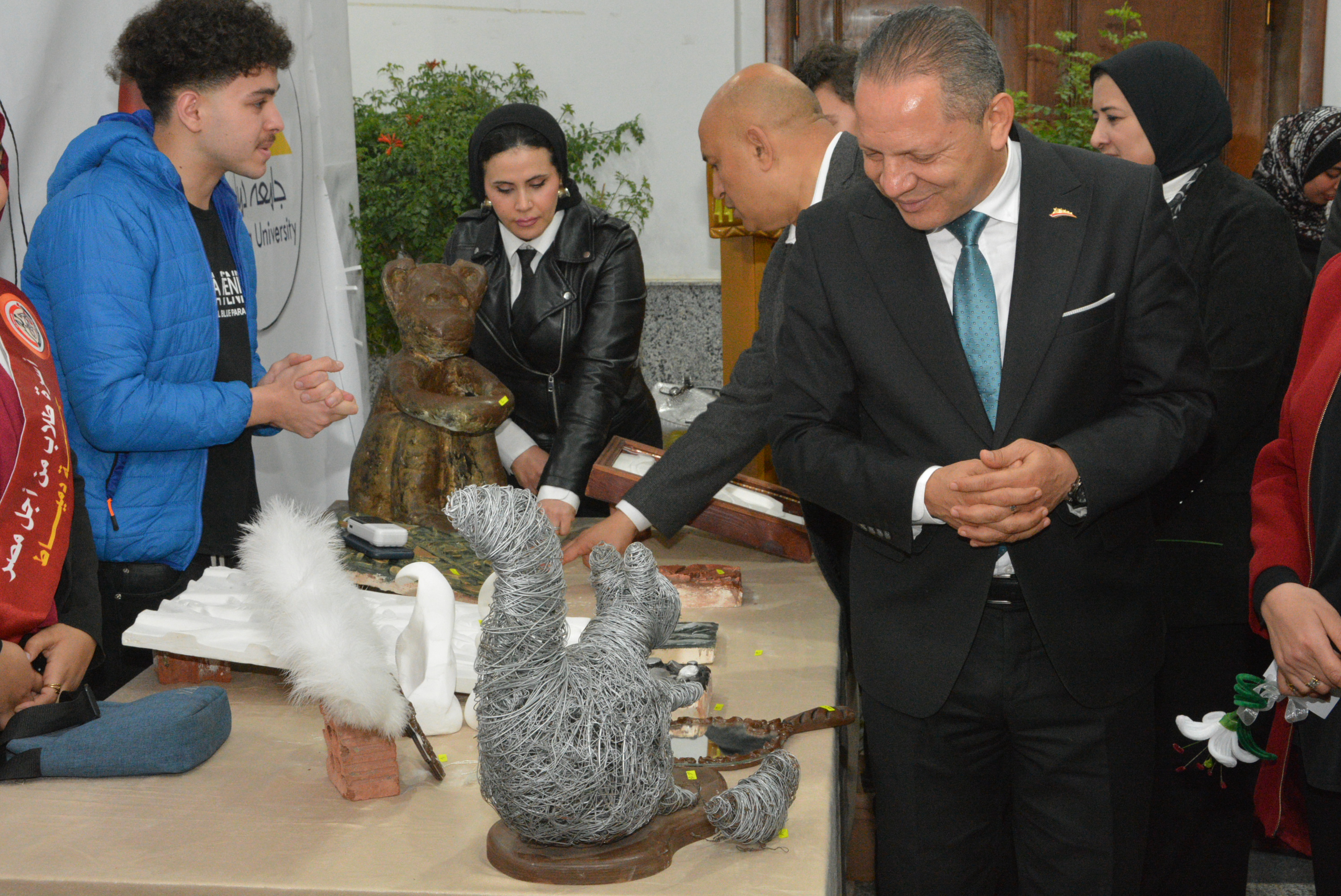 وتفقد رئيس الجامعة أجنحة البازار، حيث استمع إلى شرح من الطلاب المشاركين حول طبيعة أعمالهم ومنتجاتهم، والتي تنوعت بين الحرف اليدوية، والمشغولات الفنية، والإكسسوارات، والمنتجات التراثية، فضلاً عن بعض الابتكارات الطلابية التي تعكس مهاراتهم وقدراتهم الإبداعية.