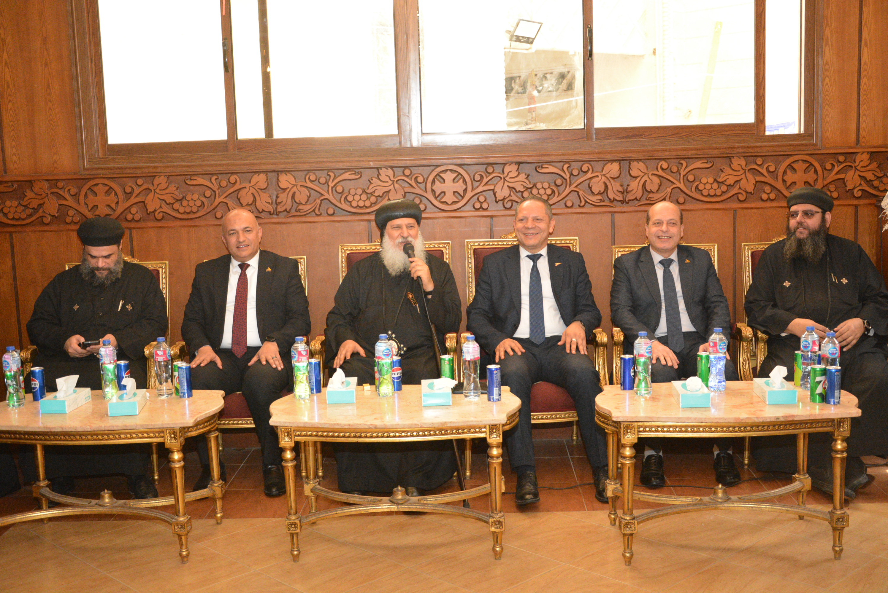وكان في استقبال رئيس الجامعة والوفد المرافق له نيافة الأنبا ماركوس أسقف دمياط وكفر الشيخ ورئيس دير القديسة دميانة، والقمص مرقس محروس يوسف سكرتير عام مطرانية دمياط، والقمص صرابامون متري وكيل مطرانية دمياط، والقمص مينا الحديدي، إلى جانب عدد من رجال الكنيسة.