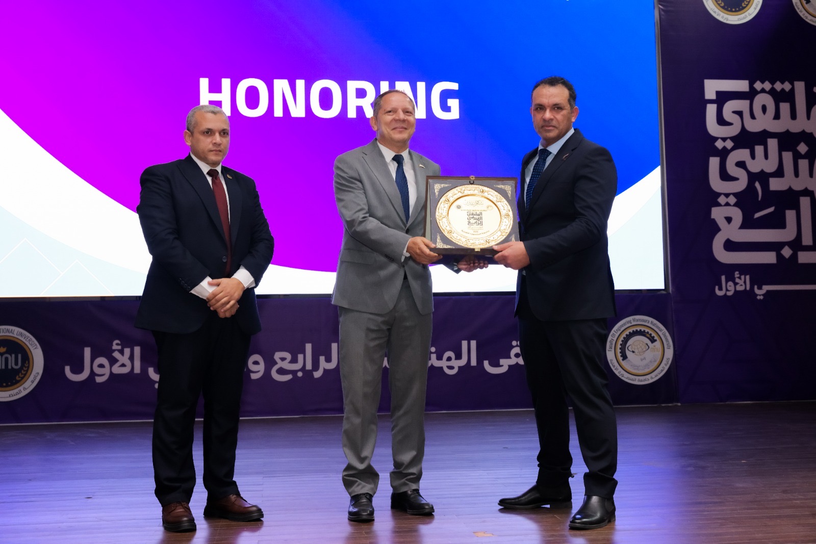 وفي ختام الفعاليات، أهدت جامعة المنصورة الأهلية درعاً تكريمياً للأستاذ الدكتور حمدان ربيع المتولي، تقديراً لدوره البارز في دعم العملية التعليمية وتعزيز التعاون بين الجامعات.