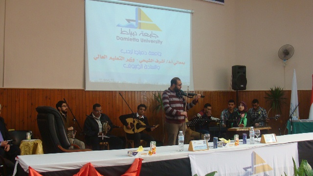 تلى ذلك عزف عدد من المقطوعات الموسيقية التي قام بتنفيذها فريق قسم التربية الموسيقية بكلية التربية النوعية بقيادة أ/ محمد العزبي – المدرس المساعد بذات القسم والكلية.