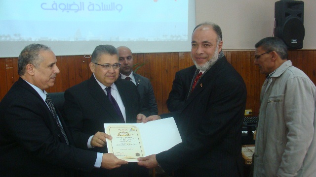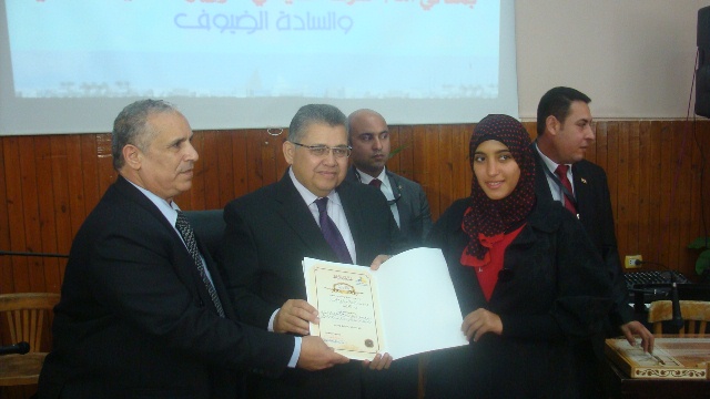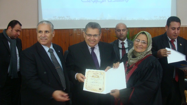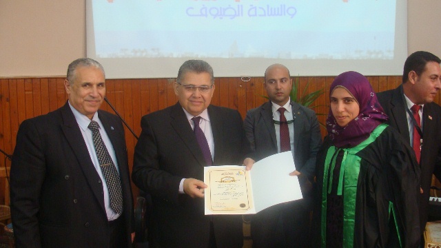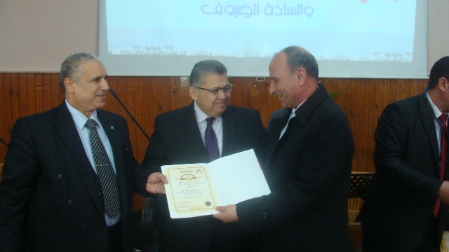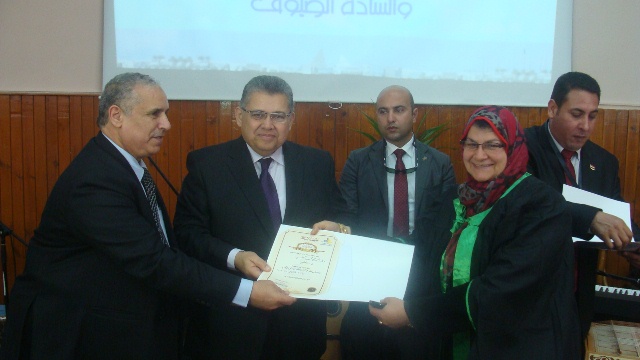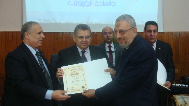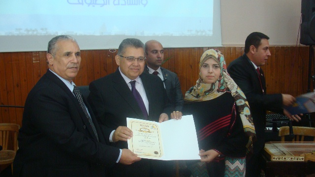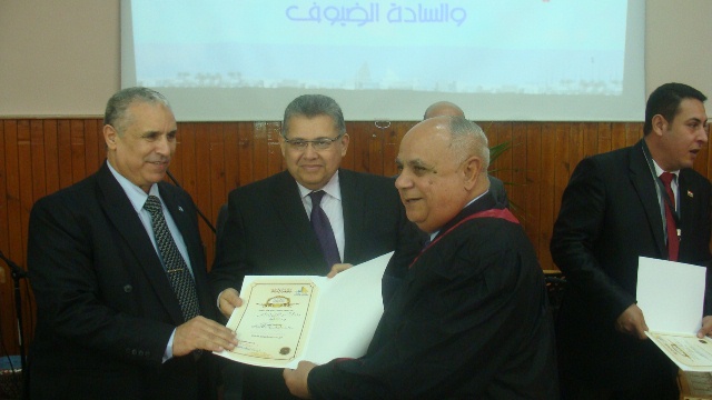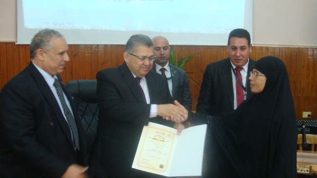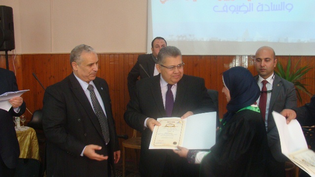 بدأت بعد ذلك فعاليات التكريم حيث تم تكريم السادة أعضاء هيئة التدريس والهيئة المعاونة الحائزين على جوائز الجامعة التشجيعية، حيث تم تكريم عدد (1) عضو هيئة تدريس حائز على جائزة الإبداع العلمي، وعدد (10) حائزين على جائزة أحسن دكتوراه، وعدد (8) حائزين على جائزة أحسن رسائل ماجستير، وعدد (34) حائزين على جائزة النشر العلمي المميز بالجامعة، وعدد (19) حائزين على جوائز من جهات خارجية، كما تم تكريم السادة أعضاء لجنة جوائز الجامعة التشجيعية وعددهم (12)، وتكريم السادة الذين بلغوا السن القانونية وعددهم (79)، وتكريم أعضاء الجهاز الإداري المثاليين وعددهم (11)، وتكريم الطلاب أوائل الكليات للعام الجامعي 2014/2015 وعددهم (9) طلاب وطالبات، وتكريم الطلاب الحاصلين على جوائز مختلفة وعددهم (23) طالب وطالبة، كما تم تكريم كلية العلوم بمناسبة حصولها على الاعتماد من هيئة ضمان جودة التعليم والاعتماد، وتلي ذلك لقاء مفتوح مع السادة أعضاء هيئة التدريس والجهاز الإداري تم خلاله مناقشة العديد من الأمور المختلفة مثل مقر نادي أعضاء هيئة التدريس.