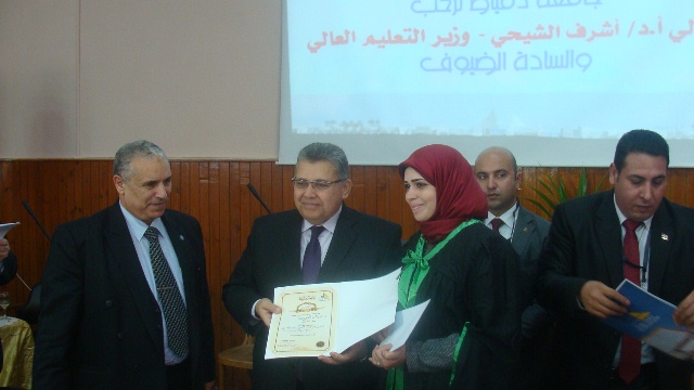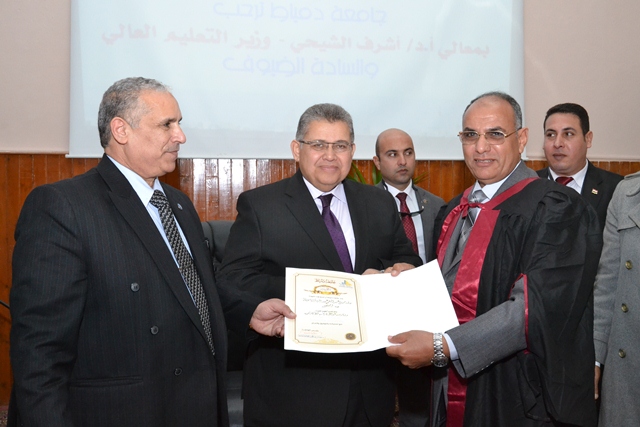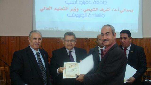 شرفت جامعة دمياط اليوم السبت 2/1/2016 بزيارة معالي أ.د/ أشرف الشيحي – وزير التعليم العالي والبحث العلمي وذلك في إطار احتفالية الجامعة بيوم التميز العلمي الذي يقام لأول مرة منذ استقلال جامعة دمياط في 2012 حيث كان في استقبال معاليه السيد المحافظ والسيد أ.د/ رمضان الطنطاوي - رئيس الجامعة، وبدأت فعاليات الزيارة بتفقد حرم الجامعة الجديد بمدينة دمياط الجديدة والذي يقام على مساحة 200 فدان، وتفقد معاليه والسيد رئيس الجامعة في حضور قيادات الجامعة والسادة أعضاء مجلس النواب المرحلة الأولي التي يتم العمل في إنهاء التشطيبات الخاصة بها والمقرر الانتهاء منها خلال شهرين بأقصى تقدير، وخلال تفقد أحد المدرجات والقاعات الدراسية، أبدى معالي الوزير انبهاره بمستوى التشطيبات الجارية، حيث أكد معاليه أن مستوي التشطيبات من هذا النوع غير موجود حتى بالجامعات الخاصة، واستكمل معاليه تفقده للإنشاءات الجامعية حيث تفقد أيضاً مجمع المعامل المركزية للكليات الأدبية، وخلال تفقده قام السيد رئيس الجامعة بشرح توضيحي للنظام المعمول به في حرم الجامعة الجديد وهو النظام المركزي للعملية التعليمية وبفصل الأماكن التعليمية عن إدارات الكليات، حيث تستوعب كل مرحلة ما يقرب من العشرة آلاف طالب بمختلف مدرجاتها وقاعتها مختلفة السعة الطلابية.