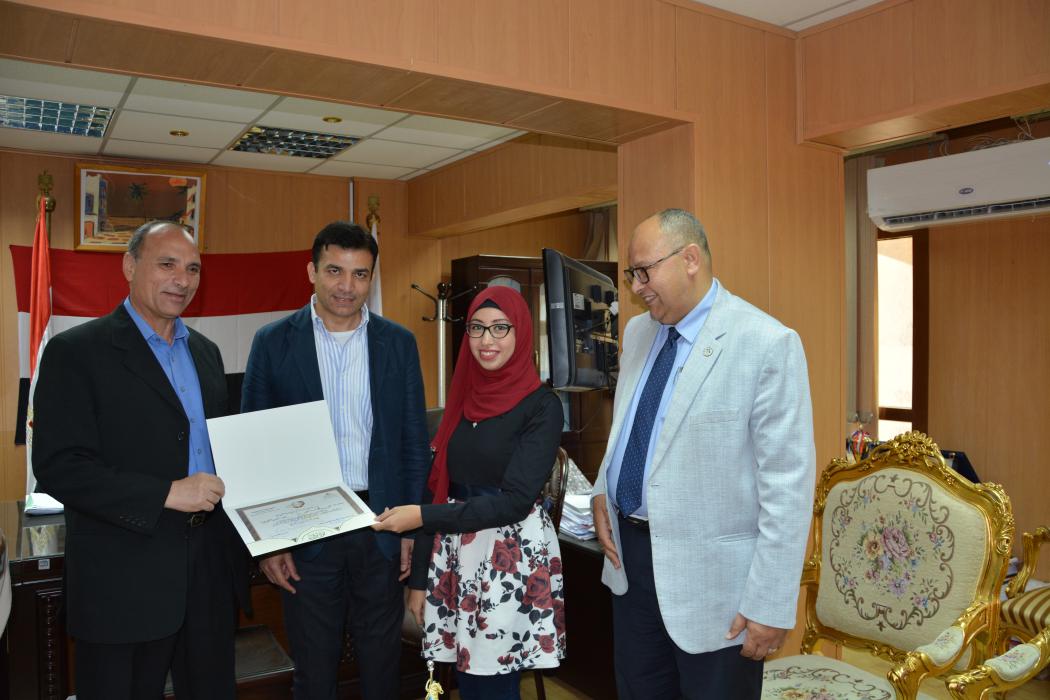 كرم اليوم الأحد الموافق 30/4/2017 السيد الأستاذ الدكتور / ممدوح محمد نعمة الله - رئيس الجامعة والسيد الأستاذ الدكتور / طارق محمد أبو المعاطي - نائب رئيس الجامعة لشئون التعليم والطلاب، طلاب الجامعة الفائزين بمسابقة ابداع (5) وهم :ـ