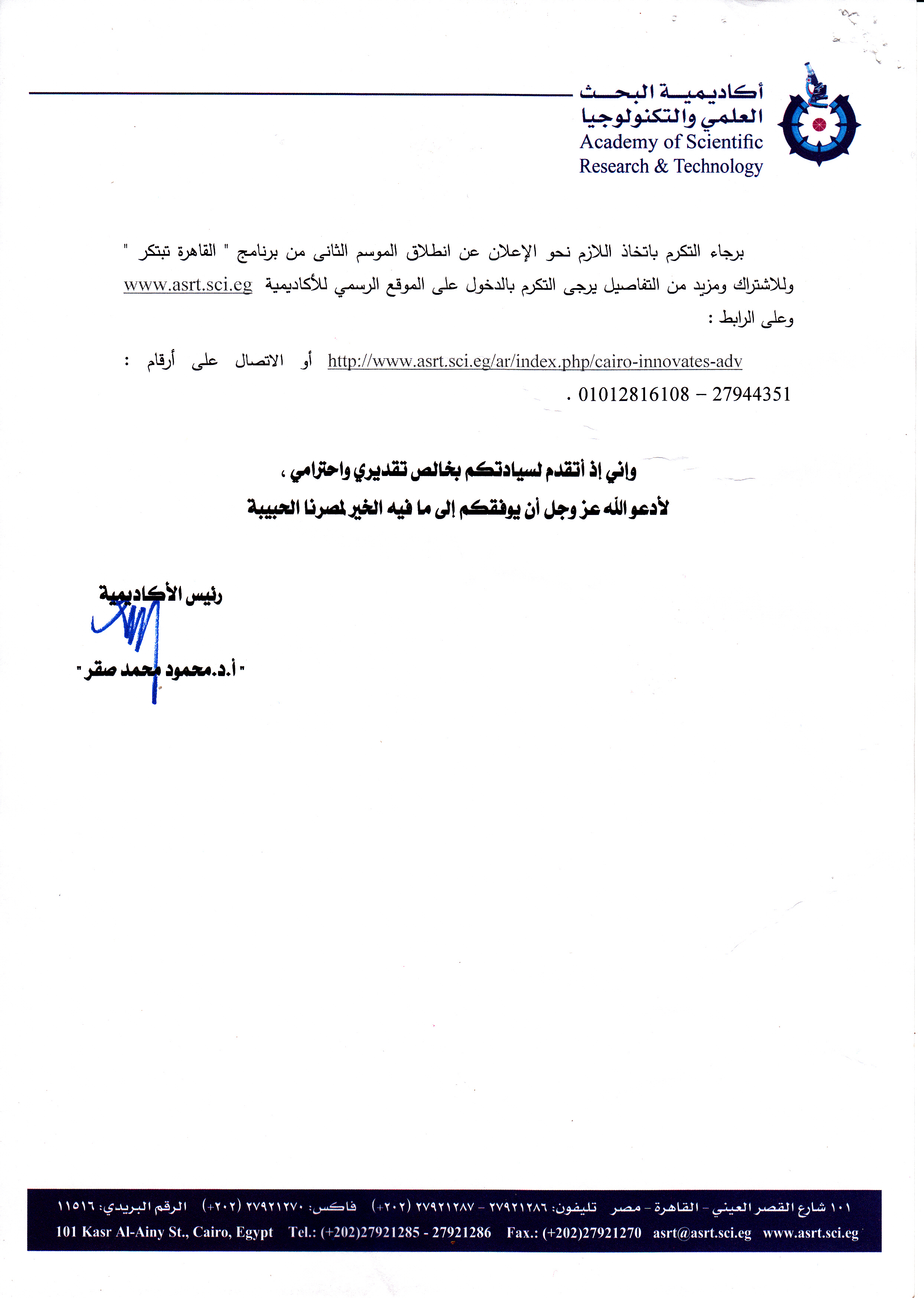 تم فتح باب التقديم للموسم الثاني من برنامج القاهرة تبتكر لعام 2017 خلال الشهر الجاري وحتي منتصف شهر مايو 2017