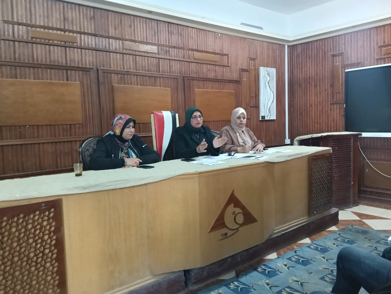 اجتمعت السيدة الاستاذة الدكتورة / غادة محمد الصياد عميد الكلية اليوم الاحد الموافق 21/12/2025 بقاعة السيمنار بالكلية وبحضور السادة الوكلاء ومدير وحدة ضمان الجودة ونائبه مع السادة أعضاء فريقي الخطة الاستراتيجية والدراسة الذاتية ورؤساء الاقسام ومنسقي البرامج الاكاديمية لمناقشة كيفية إعداد الخطة الاستراتيجية والدراسة الذاتية للكلية و التوجيه للبدء في استيفاء المتطلبات والوثائق الخاصة بالمعايير الأكاديمية .